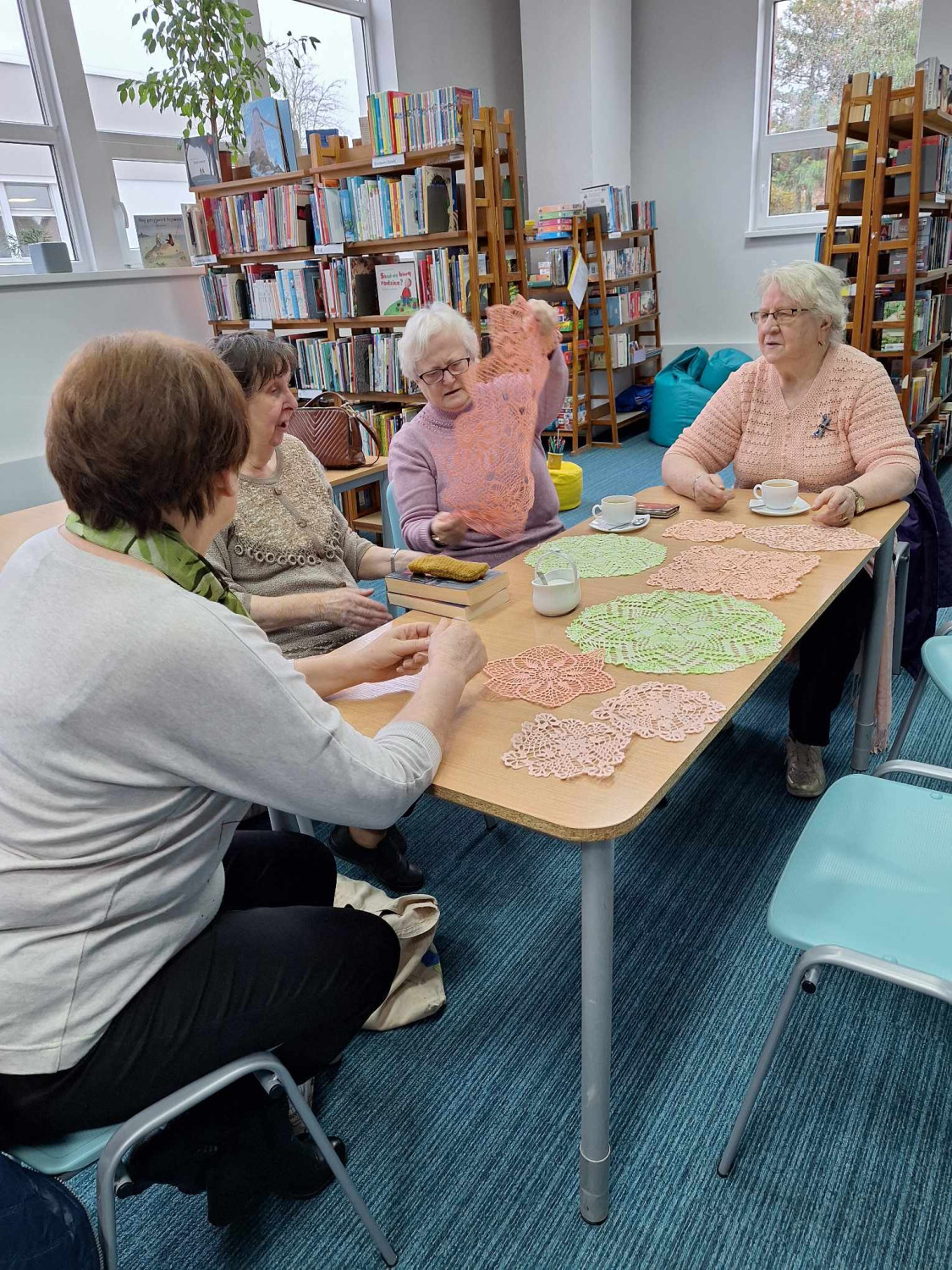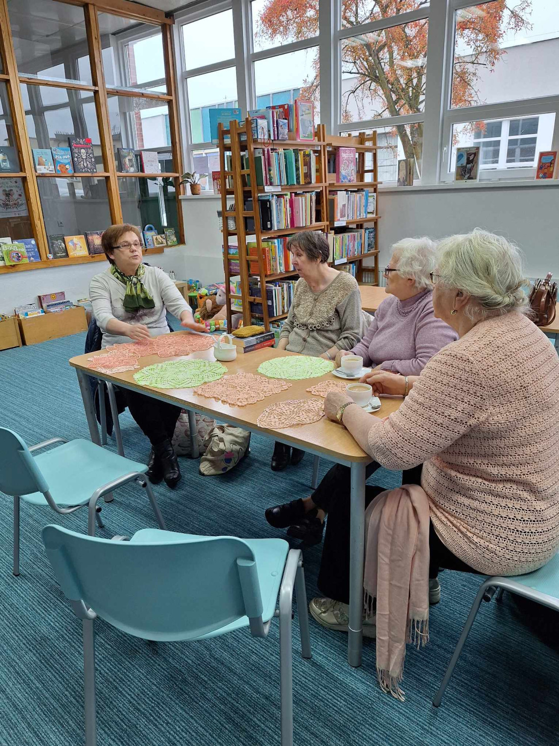 W środowy poranek odbyło się pierwsze spotkanie Klubu Rękodzielniczego "12 oczek" po remoncie. Klubowiczki chętnie dzieliły się doświadczeniami na temat technik rękodzielniczych i przyniosły serwetki, które pięknie prezentują się na stołach i rozweselają w jesienną aurę.