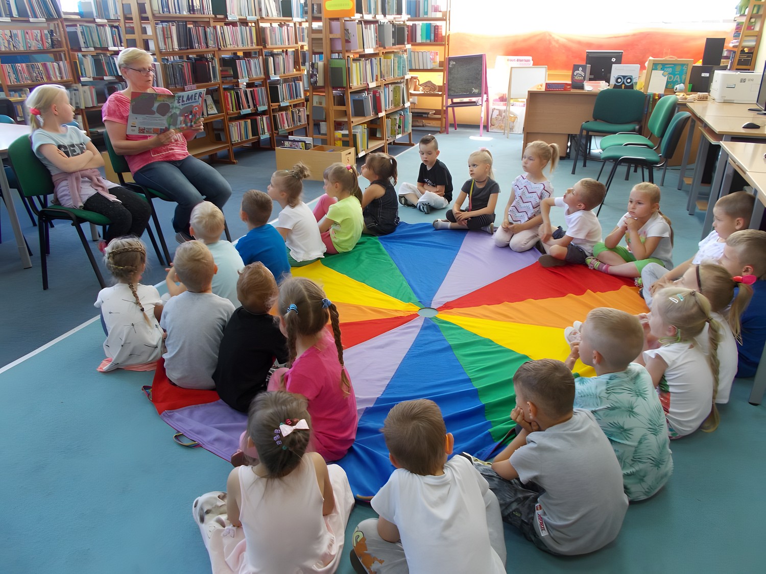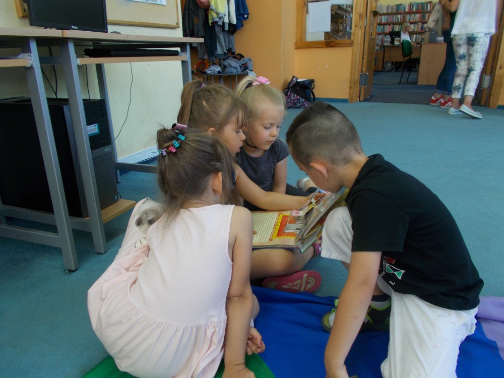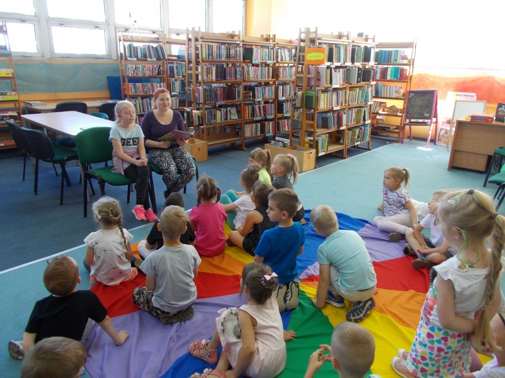 Trwa Ogólnopolski Tydzień Głośnego Czytania Dzieciom. Z tej okazji odwiedziła nas grupa „Jeżyków” z Przedszkola nr 13 w Koszalinie. Dziś było inaczej niż zwykle, ponieważ dzieciom czytał dziś specjalnie zaproszony gość, Pani Ela, nasza czytelniczka, uczestniczka spotkań w „Klubie 12 oczek” oraz Dyskusyjnych Klubów Ksiązki. Dzieci z uwagą słuchały opowiadania „Elmer i hipopotamy” Davida McKee. Przedszkolaki podziękowały Pani Eli głośnymi brawami. Po wesołych zabawach, maluchy oglądały książki.