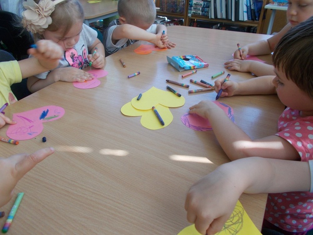 Dzisiaj odwiedziły nas „Jeżyki” - najmłodsza grupa z Przedszkola nr 13 w Koszalinie. Ponieważ Dzień Mamy już za kilka dni, specjalnie dla naszych małych gości przygotowaliśmy kolorowe serduszka-laurki, które dzieci pięknie pokolorowały i prezenty gotowe! Oczywiście nie zabrakło głośnego czytania bajek oraz zabawy!