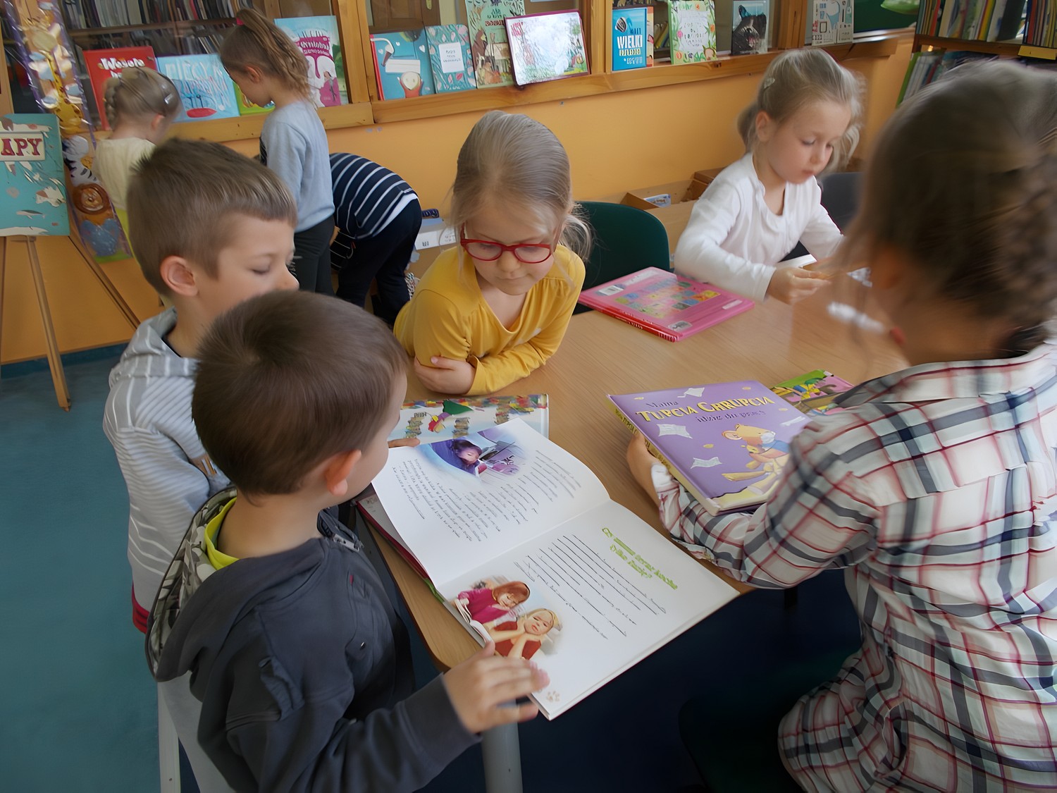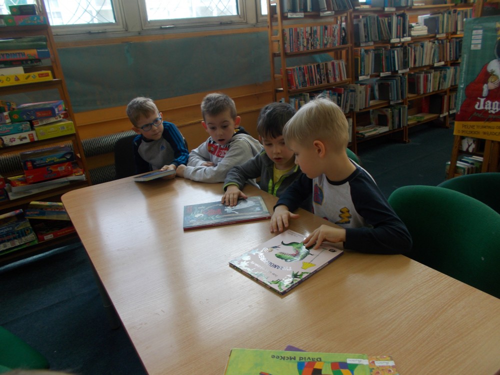 Cały tydzień świętowaliśmy Światowy Dzień Książki. Mali miłośnicy książek przyszli dziś do biblioteki, by wysłuchać opowieści "O dzieciach, które kochają książki", która uświadamia, jak ważne jest wspólne czytanie książek i spędzanie czasu z rodziną. Jeżyki wzięły udział w zagadkach i zabawach, w których występują bohaterowie znanych i lubianych bajek. Przedszkolaki chętnie oglądały w bibliotece książki i umówiły się już na kolejną wizytę.