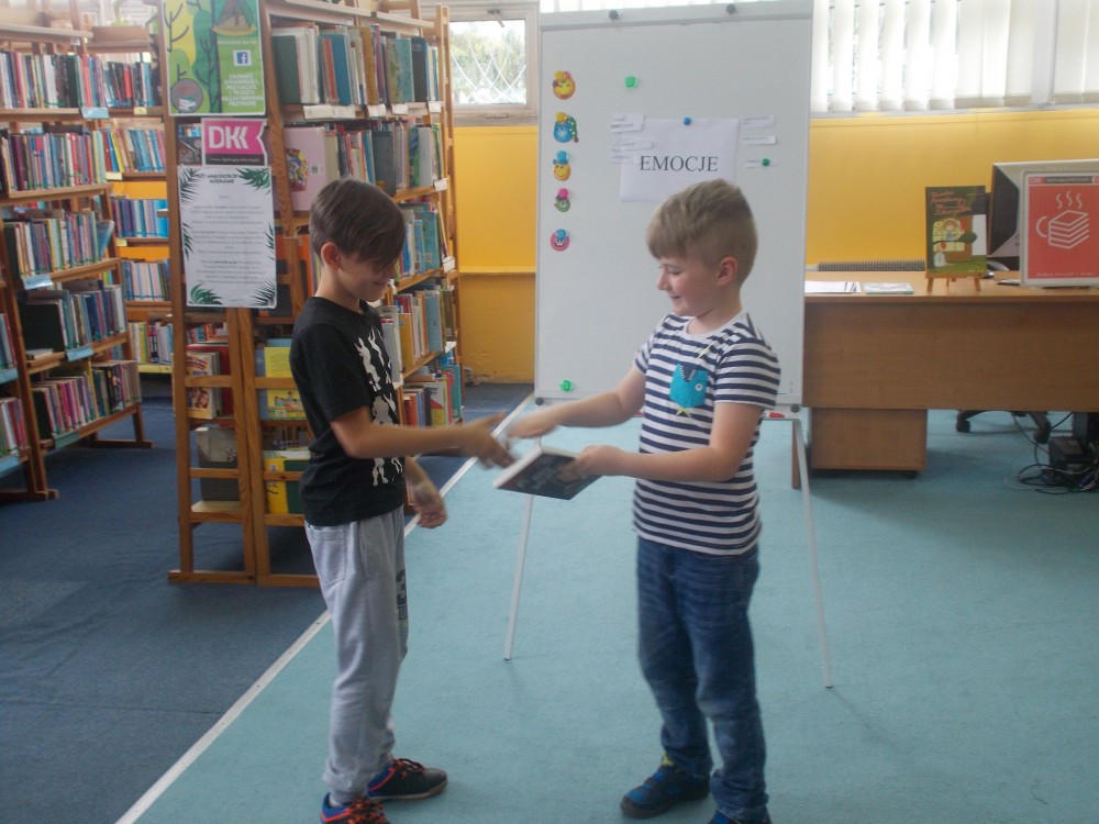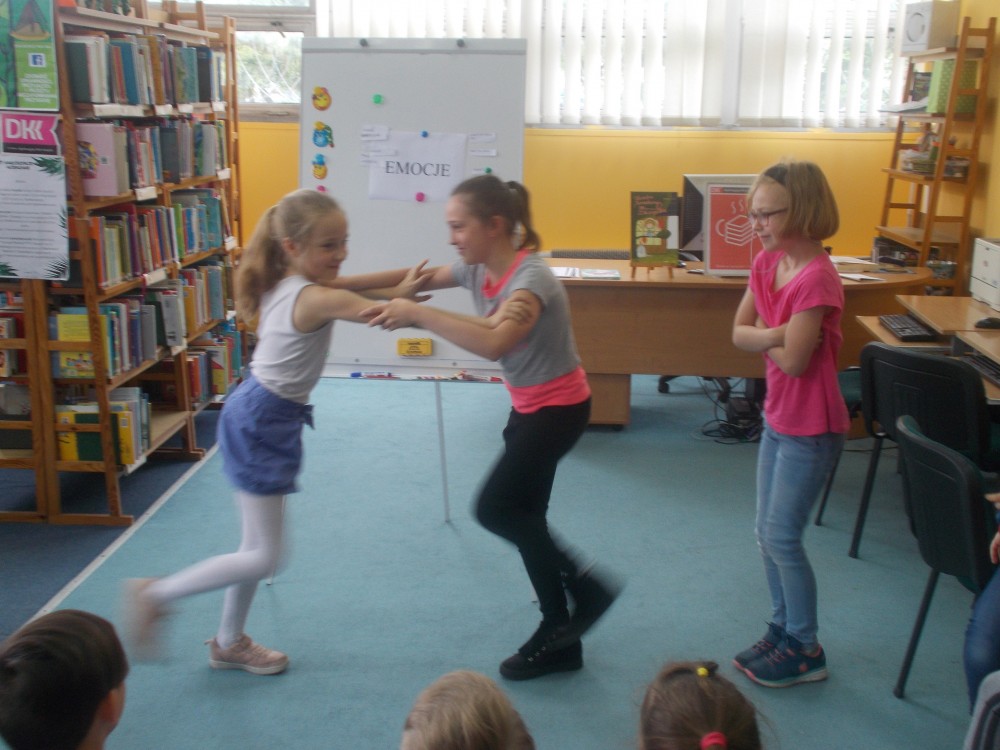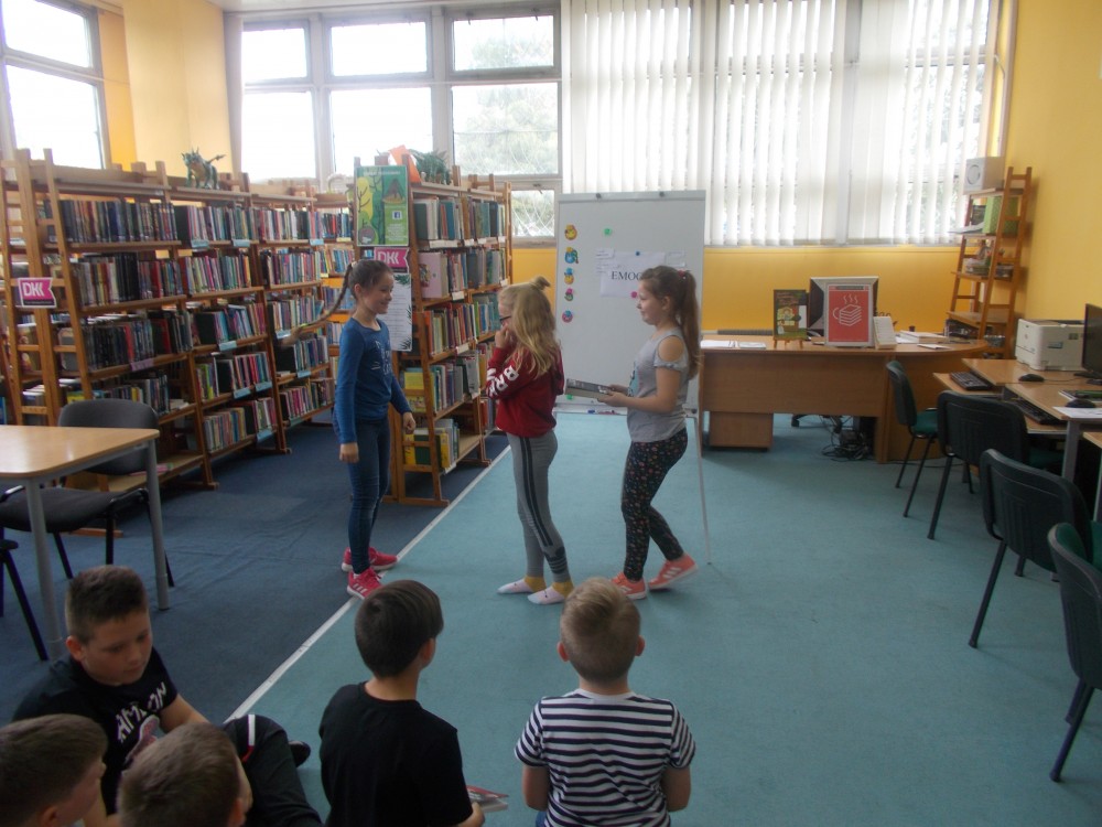 Co to są emocje? Jak je okazujemy? Co to są emotikony? Jak radzimy sobie ze złością? Czy łatwo panować nad emocjami? Na te i inne pytania próbowaliśmy odpowiedzieć z uczniami klasy 2 a ze Szkoły Podstawowej nr 5 w Koszalinie. Dzieci wysłuchały fragmentów opowiadań, zarówno Elżbiety Zubrzyckiej „Po co się złościć?”, jak i „Wielkiej księgi emocji” Pujol i Pons, Esteve w formie baśni o uczuciach typu złość, impulsywność czy nieodwracalność pewnych sytuacji. Drugoklasiści nazywali swoje emocje w stosunku do różnych zdarzeń dnia codziennego, ćwiczyły mimikę twarzy adekwatną do danej sprawy. Zwieńczeniem spotkania były małe spektakle teatralne bez użycia słów. Zadaniem uczestników było odgadnięcie, jakie emocje przedstawili.