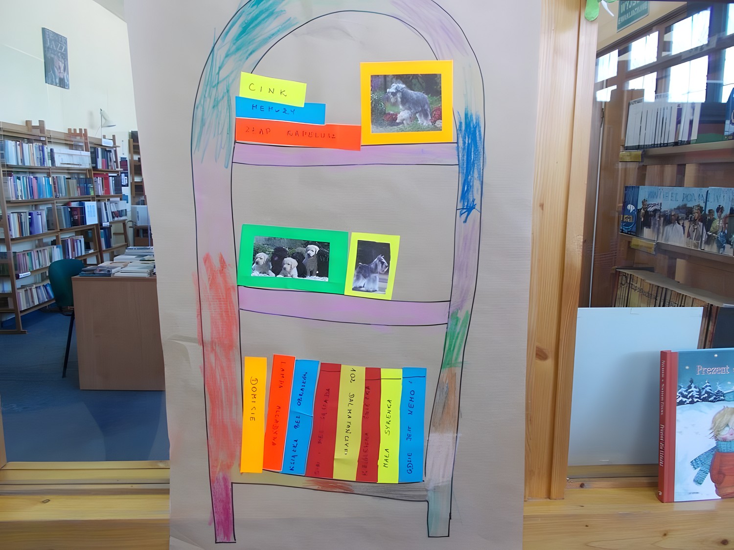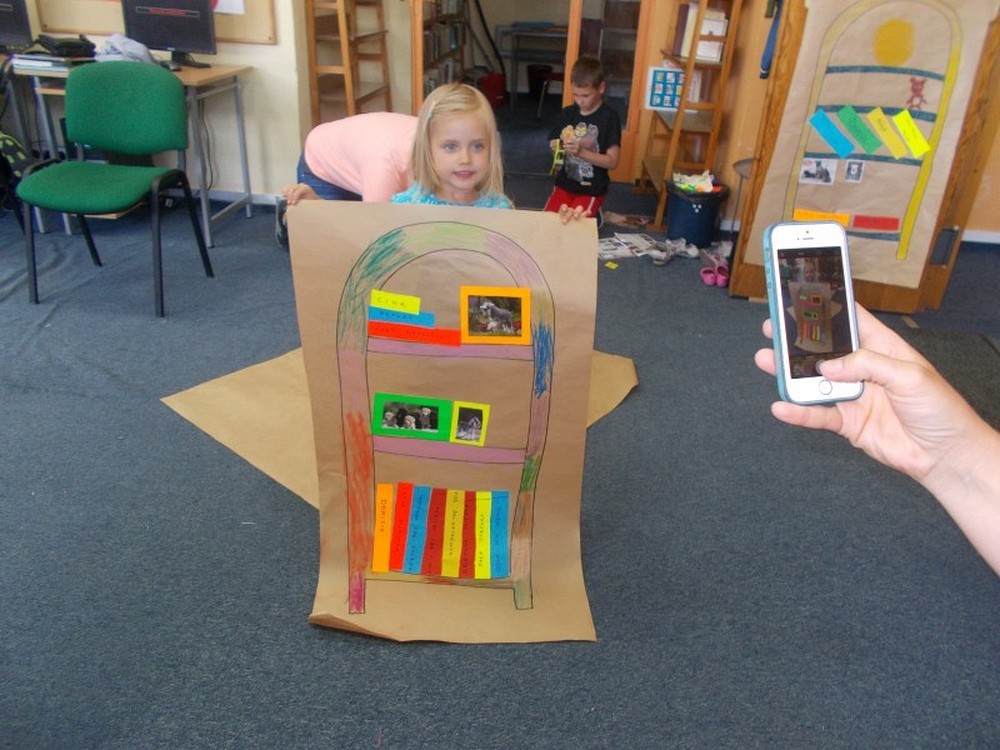Każdy z nas ma w domu swoją półeczkę, na której lubi eksponować ciekawe przedmioty. Nasi mali czytelnicy gromadzą na nich ulubione książeczki, fotografie ze zdjęciami i zabawki. Na czwartkowych zajęciach plastycznych postanowiliśmy odtworzyć domowe regały, na których znalazły się tytuły najczęściej czytanych książek i inne ważne dla nich przedmioty.