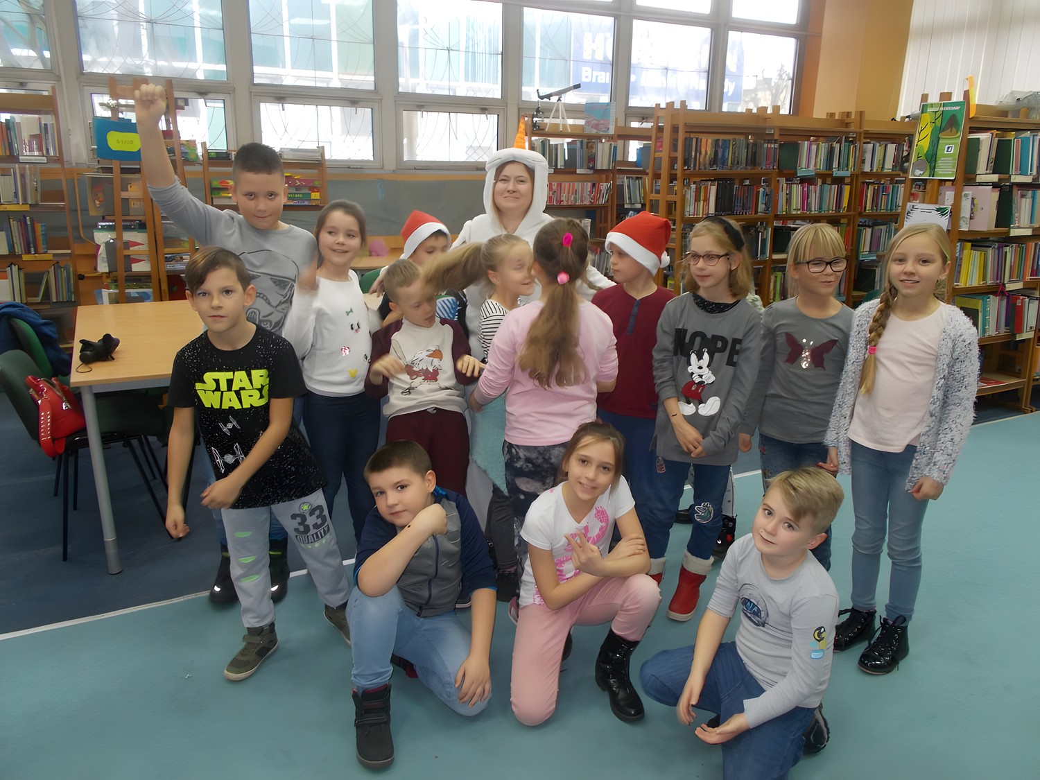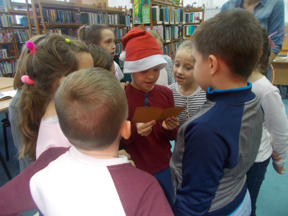 Dziś odwiedzili nas drugoklasiści ze Szkoły Podstawowej nr 5 w Koszalinie. Dzieci otrzymały list od Świętego Mikołaja z zadaniami, które zostały ukryte w kopertach przez elfów. Trudnych wyzwań nie zabrakło. Kluczem do pomyślnego ukończenia wszystkich zadań była dobra współpraca między wszystkimi uczestnikami gry. Na finiszu, ku zaskoczeniu naszych gości, czekał na nich „Olaf” znany z bajki „Kraina lodu”, który przekazał zostawiony przez Mikołaja prezent. Oprócz tego, znana i lubiana przez dzieci postać przygotowała również książkową niespodziankę i przeczytała swoim ulubieńcom „Złego kocurka i gwiazdkę” Nicka Bruel.