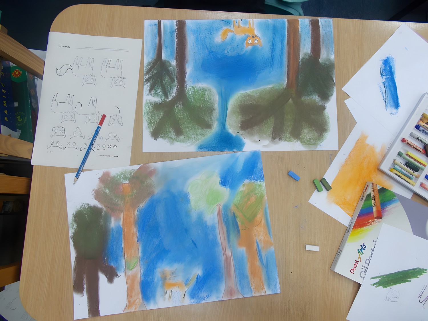 Lasy w Polsce są piękne o każdej porze roku. Różnorodność fauny i flory, ścieżki zdrowia czy Singletrack - to atrakcje, z których każdy koszalinianin, mały i duży, może korzystać do woli. Na naszych zajęciach literacko-plastycznych dzieci stworzyły leśne krajobrazy wraz ze zwierzątkami, które można tam spotkać. Zajęcia były okazją do przypomnienia sobie i podkreślenia, jak ważne jest dbanie o czystość środowiska, dzięki czemu zarówno ludziom, jak i zwierzętom, będzie żyło się lepiej.