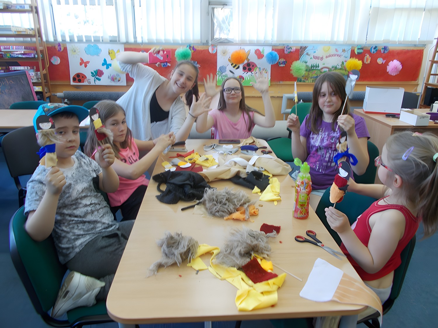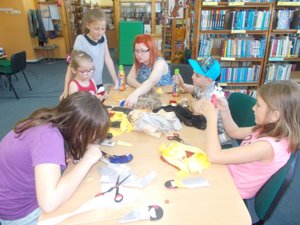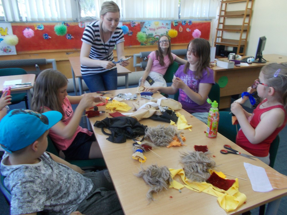 W czwartkowe, cieple popołudnie spotkaliśmy się na naszych zajęciach literacko- plastycznych, aby ozdobić japońskie pacynki. Nasza grupa lubi dobrą zabawę, dlatego z radością bawiliśmy się w kalambury.