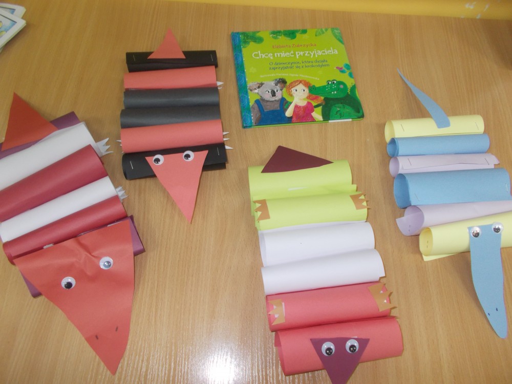 Przyjaźń jest ważna w życiu każdego człowieka. Przyjaciela kocha się bezwarunkowo i nie próbuje się go na siłę zmienić. Elżbieta Zubrzycka w książce "Chcę mieć przyjaciela : o dziewczynce, która chciała zaprzyjaźnić się z krokodylem", opowiada historię relacji dziewczynki i krokodyla, która okazała się być nierealna ze względu na obojętną i trudną naturę zwierzęcia. Z czasem dziewczynka poznaje koalę… Podczas czwartkowych zajęć dzieci podjęły próbę stworzenia kolorowych krokodyli.
