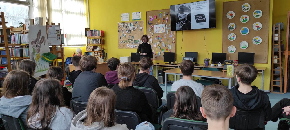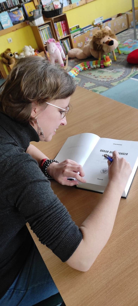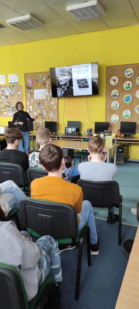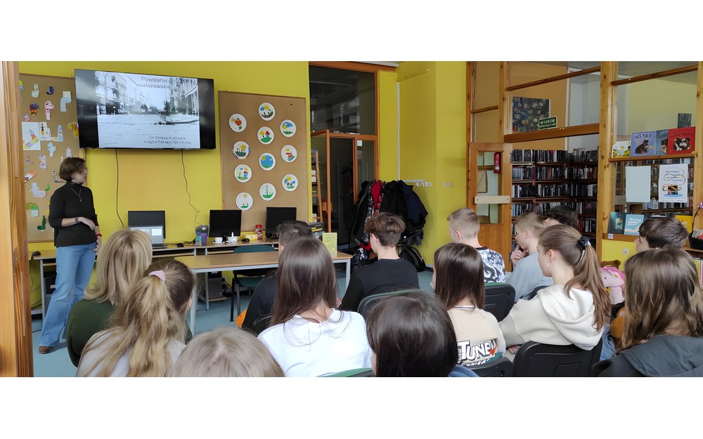 Dziś odwiedziły nas dwie grupy ośmioklasistów ze Szkoły Podstawowej nr 5, by wziąć udział w ciekawym spotkaniu na temat Powstania Warszawskiego z Panią Sorayą Kuklińską, panią doktor i pracownikiem Instytutu Pamięci Narodowej, a także autorką dwóch książek: ,,Działalność jednostki SS Sonderkommando "Dirlewanger" (1940-1945)”oraz „Oskar Dirlewanger’. Nasz gość opowiedział o Powstaniu Warszawskim, wzbogacając je ciekawostkami i mniej znanymi faktami. Młodzież była bardzo ciekawa historii ludzi walczących w powstaniu i wykazała się ogromną wrażliwością wobec tej ciekawej, lecz tragicznej przeszłości. Pani Soraya podarowała naszym czytelnikom obie swoje książki, za co serdecznie dziękujemy