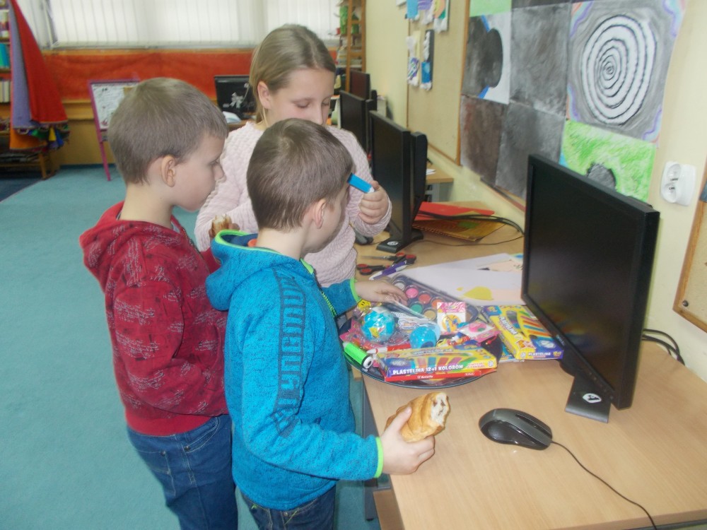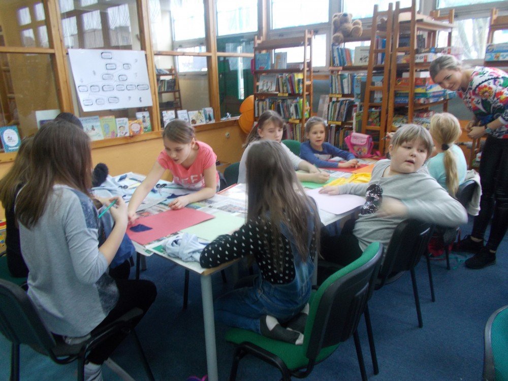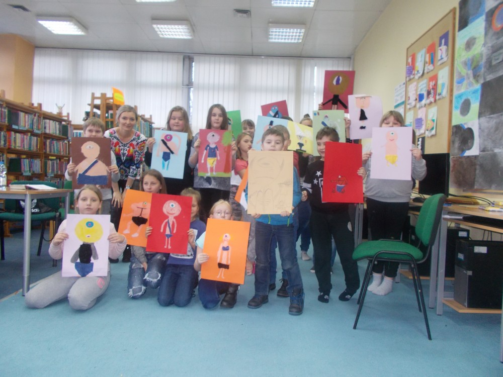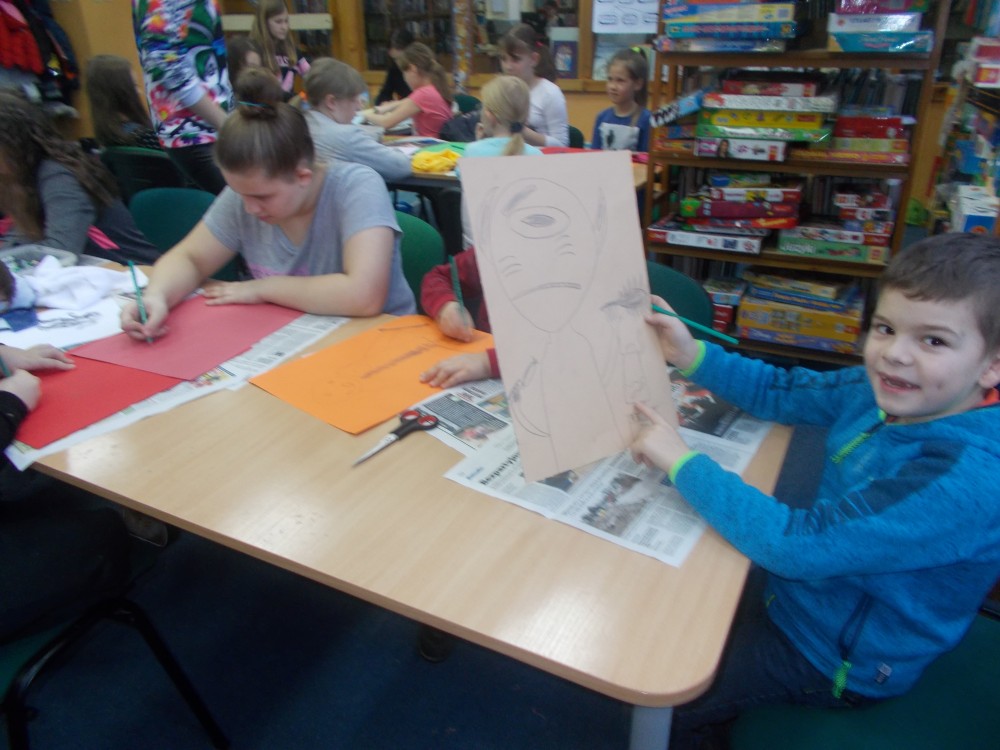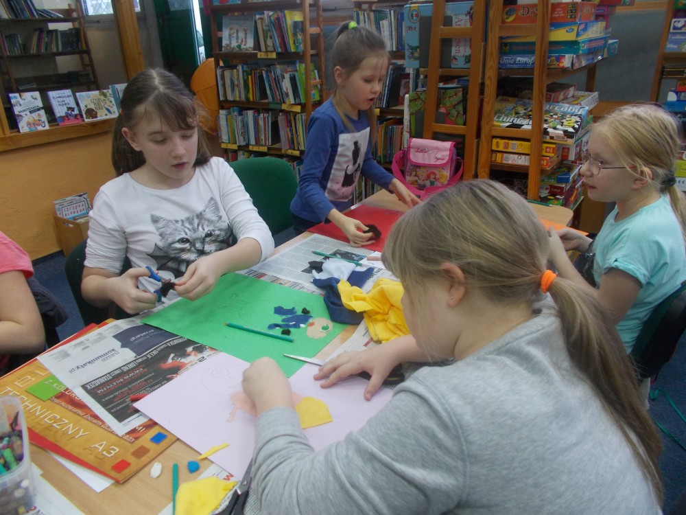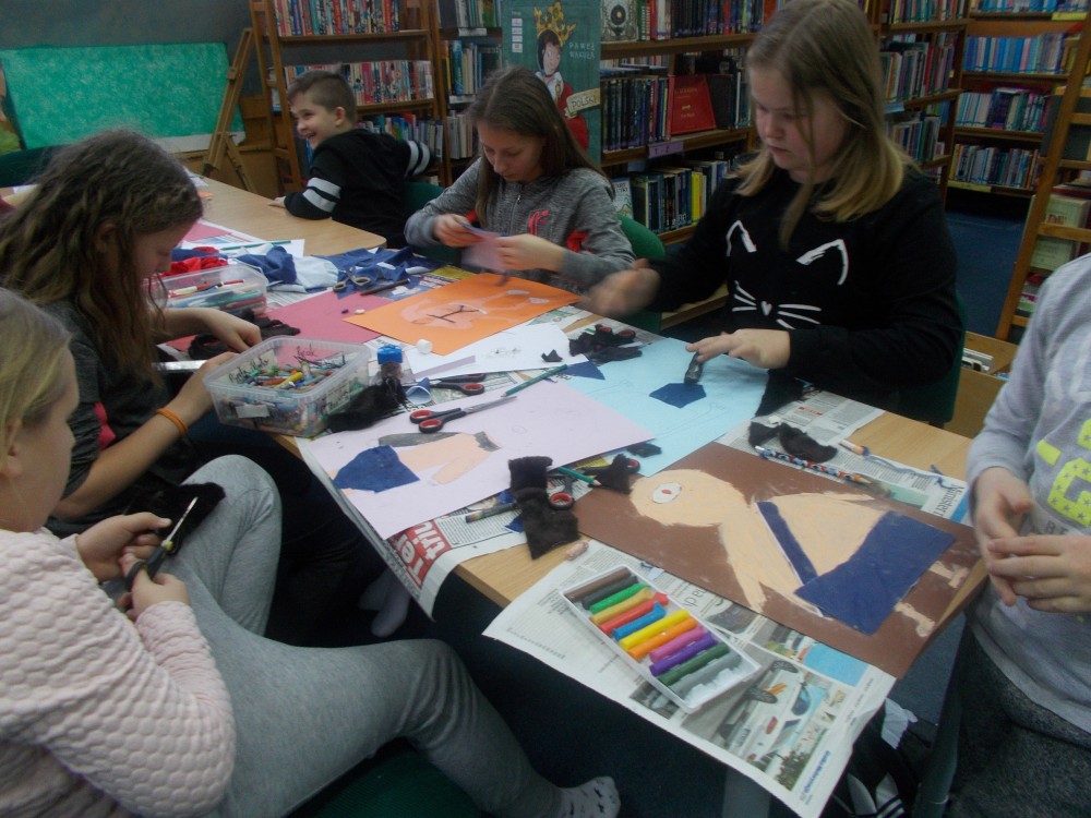 Nadszedł czas na pożegnanie. Podczas naszego ostatniego dnia ferii, bawiąc się w burzę piaskową tworzyliśmy wymyśloną przez najmłodszych wspólną opowieść mitologiczną. Mali czytelnicy wykonali cyklopa ze ścinków materiałów, futra, plasteliny i kredek pastelowych. Efekt był piorunujący, dlatego prace wiszą na naszej wystawie. Nie mogło również zabraknąć quizu mitologicznego z nagrodami i uczty bogów.