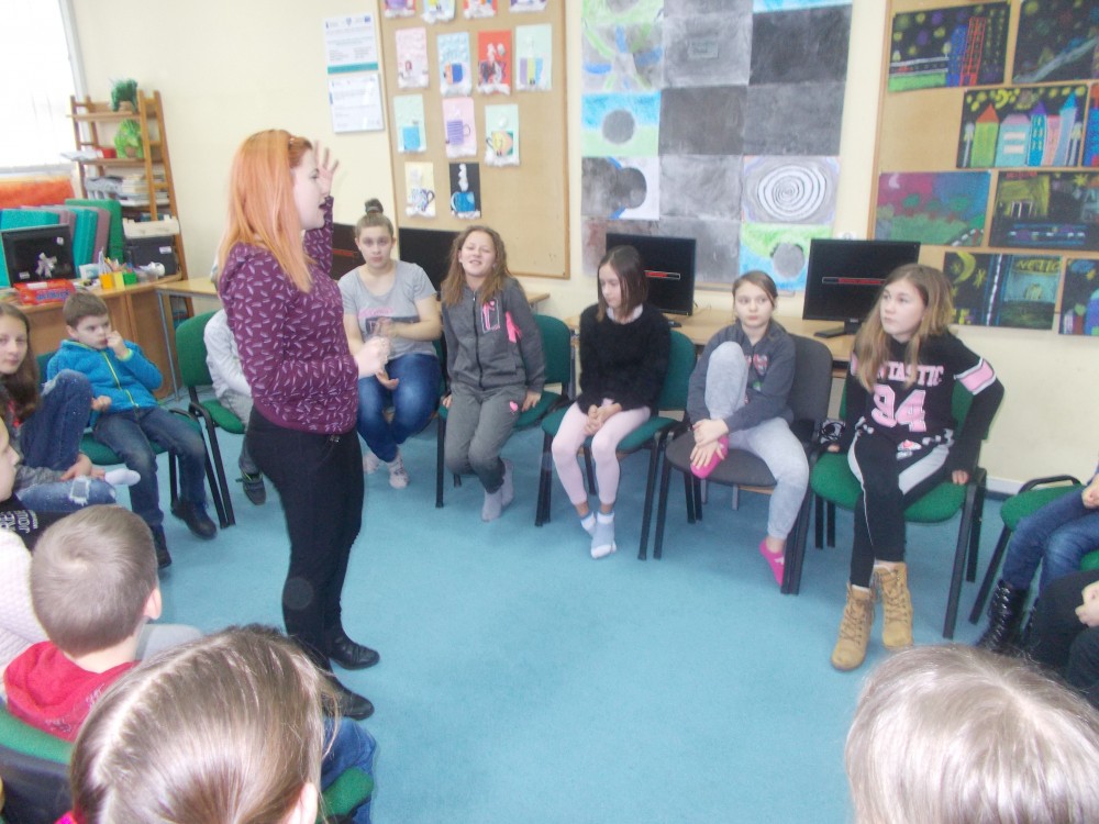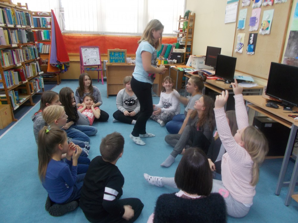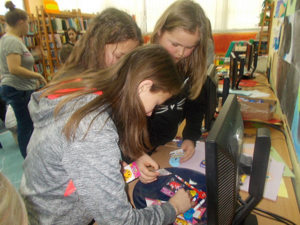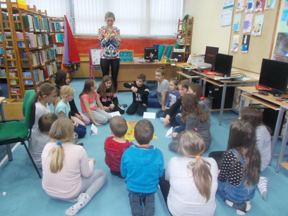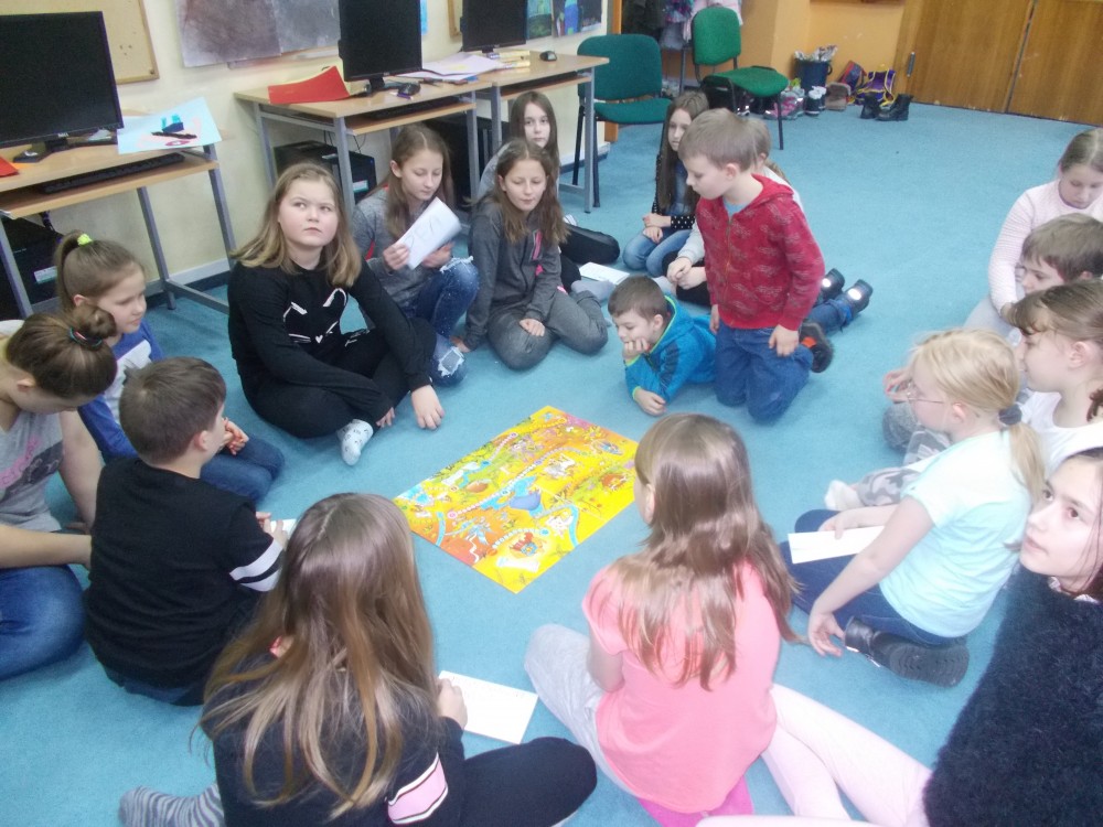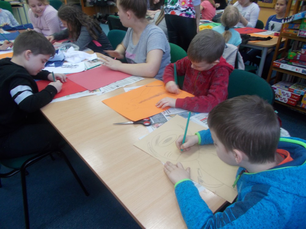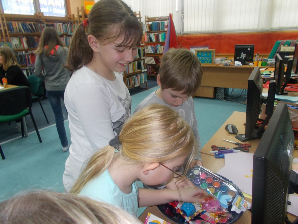 Nadszedł czas na pożegnanie. Podczas naszego ostatniego dnia ferii, bawiąc się w burzę piaskową tworzyliśmy wymyśloną przez najmłodszych wspólną opowieść mitologiczną. Mali czytelnicy wykonali cyklopa ze ścinków materiałów, futra, plasteliny i kredek pastelowych. Efekt był piorunujący, dlatego prace wiszą na naszej wystawie. Nie mogło również zabraknąć quizu mitologicznego z nagrodami i uczty bogów.
