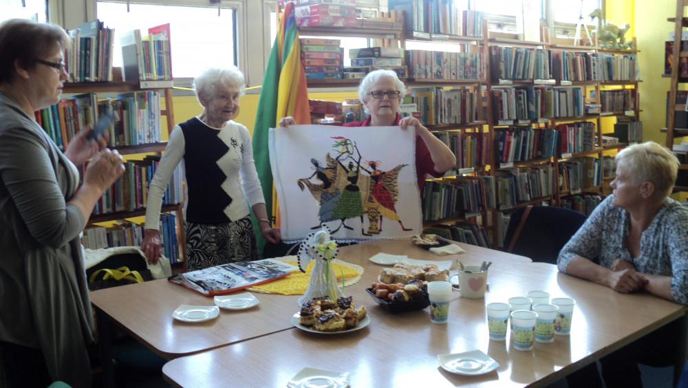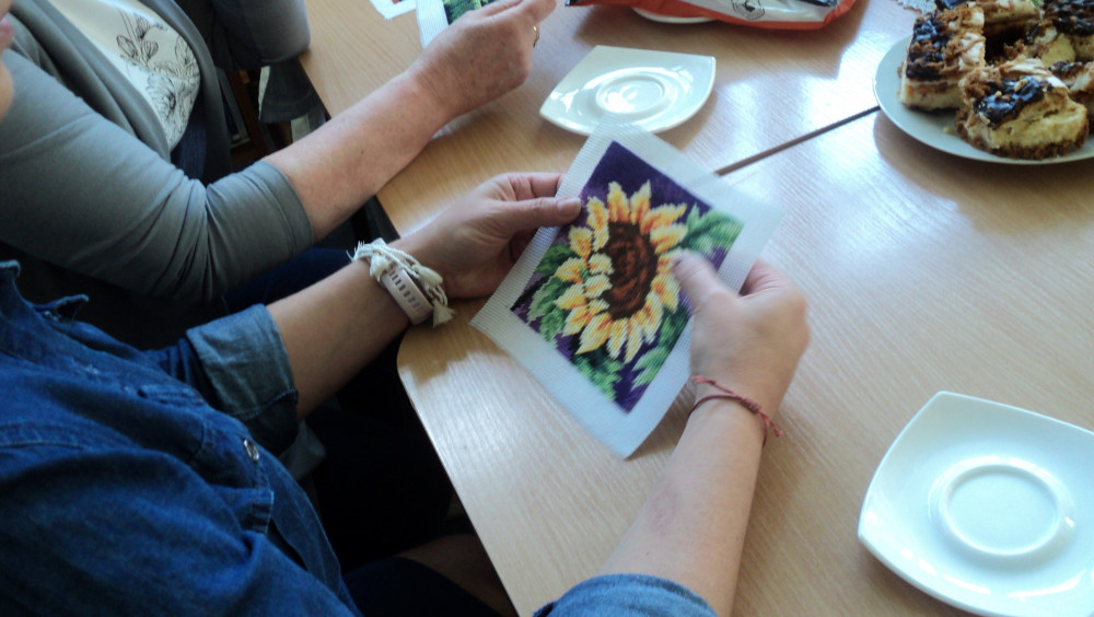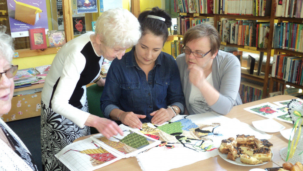 Kobiety renesansu, które łączy pasja rękodzieła, na nasze ostatnie przedwakacyjne spotkanie, przyniosły prawdziwe dzieła sztuki. Jedna z naszych sympatycznych czytelniczek miała imieniny, Pani Wanda postanowiła poczęstować nas prawdziwymi, słodkimi rarytasami. Wspaniały zapach ciasta unosił się w powietrzu, a życzeń nie było końca. Udane i owocne spotkania nastroiło nas wszystkich pozytywnie. Mimo, że przed nami przerwa wakacyjna, wszystkie klubowiczki pytały już o kolejne spotkanie i nie mogą doczekać się jesieni.