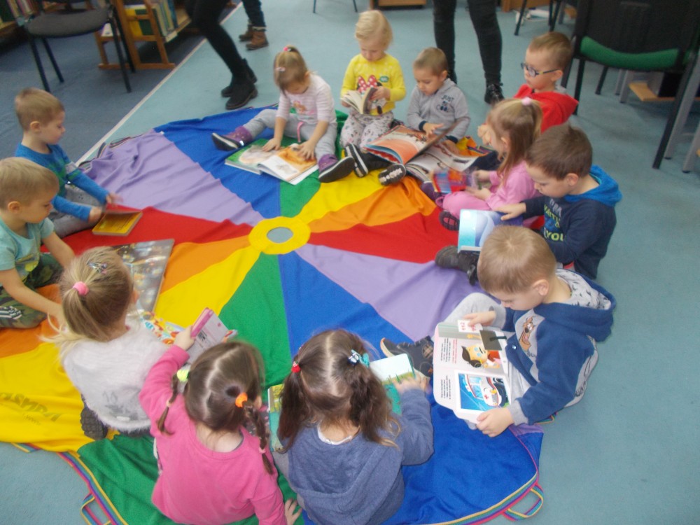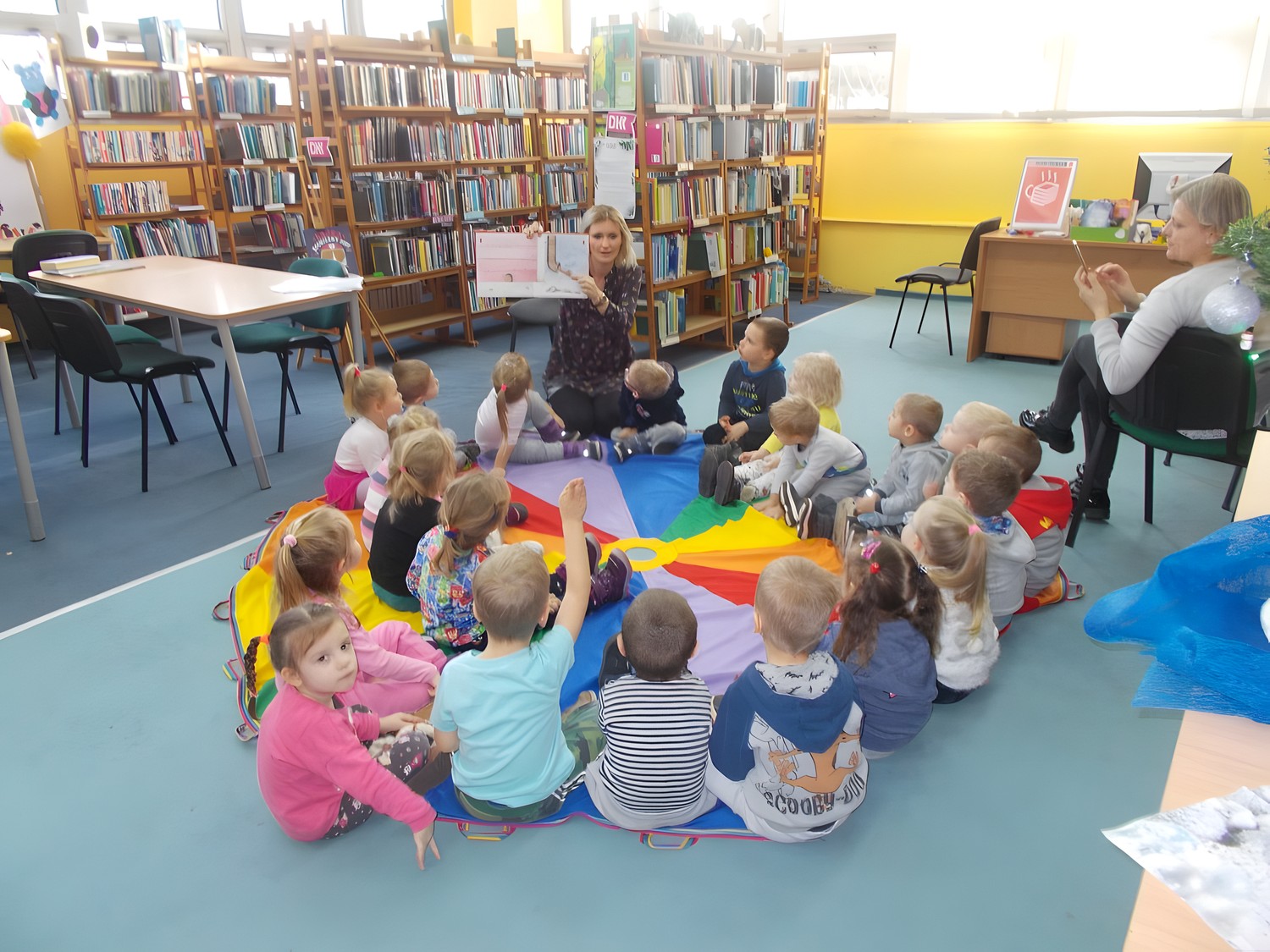 Pierwsza wizyta dzieci w bibliotece to okazja do zainteresowania najmłodszych książeczkami. Dzisiaj po raz pierwszy gościłyśmy trzylatki z Przedszkola nr 13 w Koszalinie, które miały okazję przekonać się, jakie piękne bajki, baśnie i ilustracje można znaleźć na naszych bibliotecznych półkach. ,,Rysie” wysłuchały również świątecznego opowiadania Elizy Piotrowskiej pt. ,,Święta Tupcia Chrupcia”, szukały świątecznych ozdób ukrytych w bibliotece oraz bezbłędnie wskazywały gwiazdkowe symbole ukryte na obrazkach.