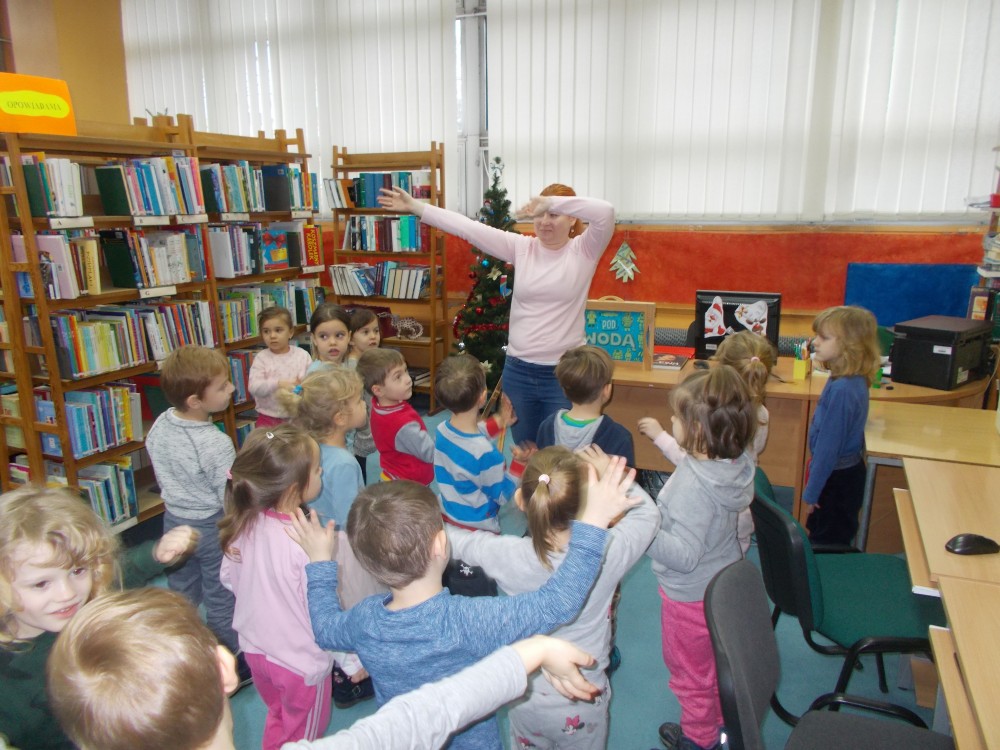 z Przedszkola nr 13 w Koszalinie, które odwiedziły nasza bibliotekę. Czterolatki świetnie poradziły sobie w zimowych zabawach i zgadywankach. Wysłuchały książki „Yeti” E. Susso opowiadającej o przyjaźni i tolerancji w zimowej scenerii.