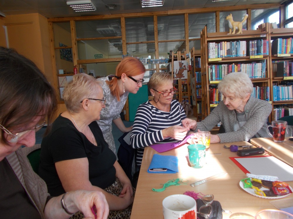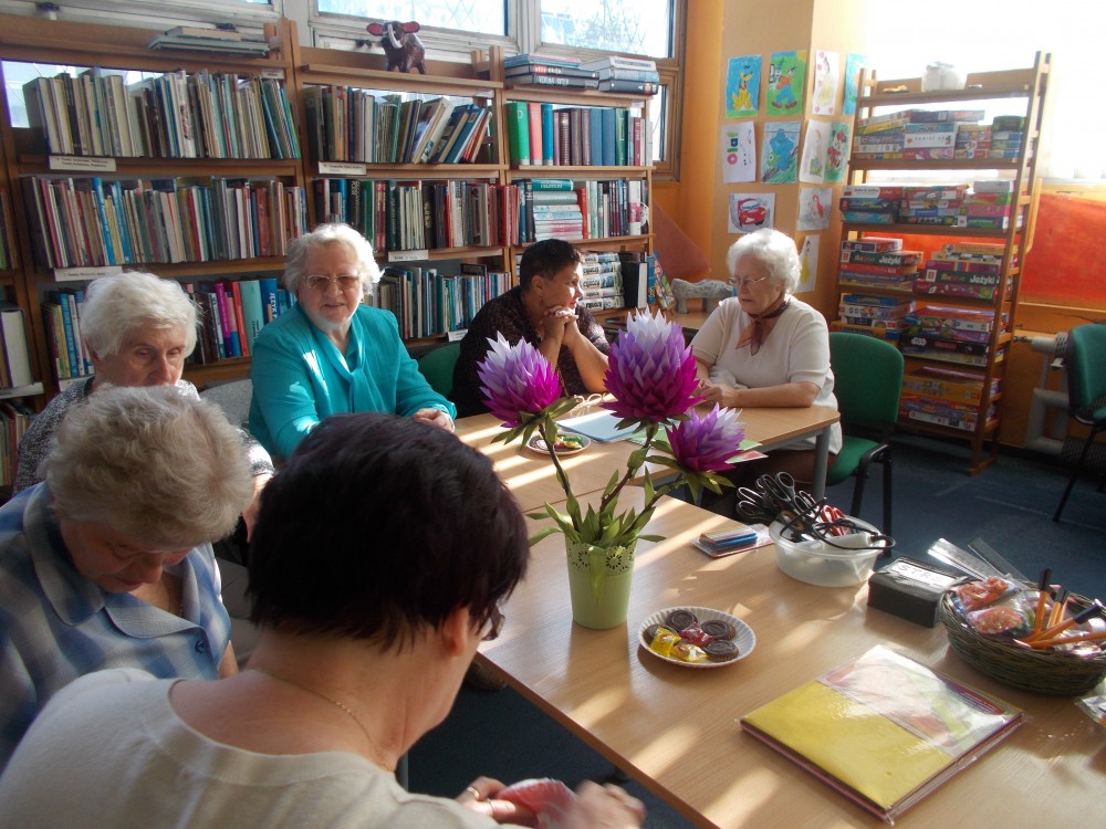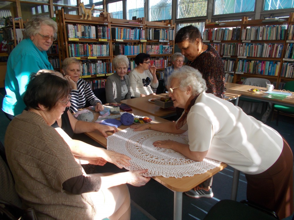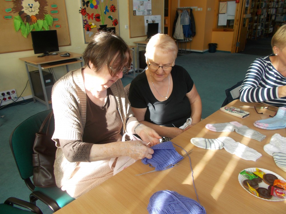 20 września spotkałyśmy się z członkiniami klubu czytelniczek ,,12 oczek”, aby po raz kolejny oddać się przyjemnym zajęciom rękodzielniczym. Panie miały okazję zaprezentować wykonane przez siebie, metodą szydełkowania i innych robótek ręcznych, przedmioty. Spotkanie odbyło się w miłej atmosferze i było bardzo inspirujące.