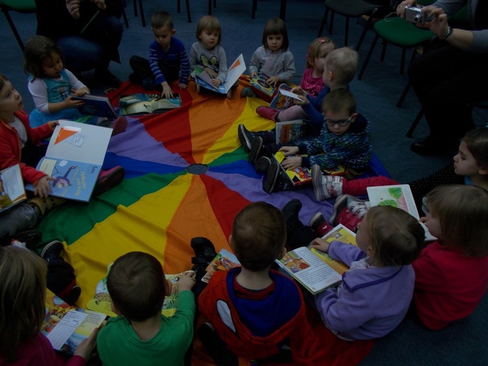 Miło nam było spotkać się ponownie w bibliotece z małymi „Jeżykami”. Odwiedziła nas bowiem grupa przedszkolna – trzylatki z Przedszkola nr 13. Tematem spotkania były zawsze z zaciekawieniem słuchane – baśnie.