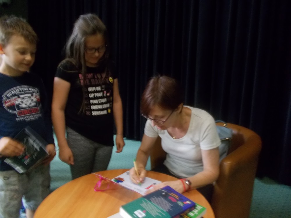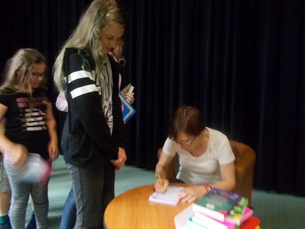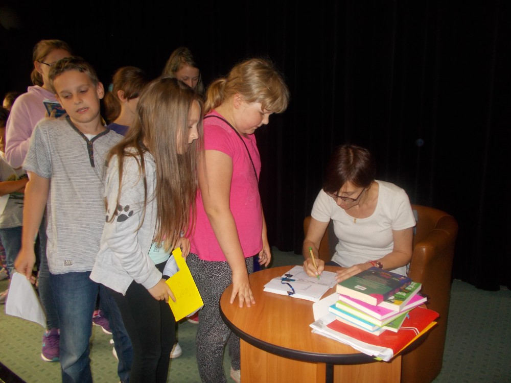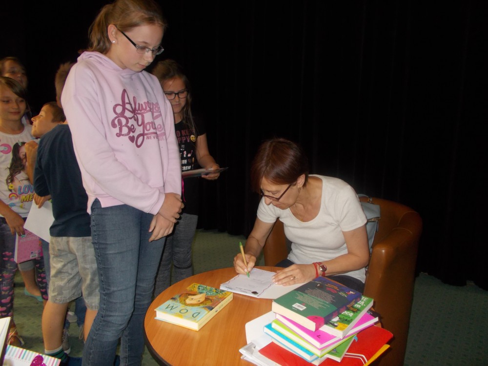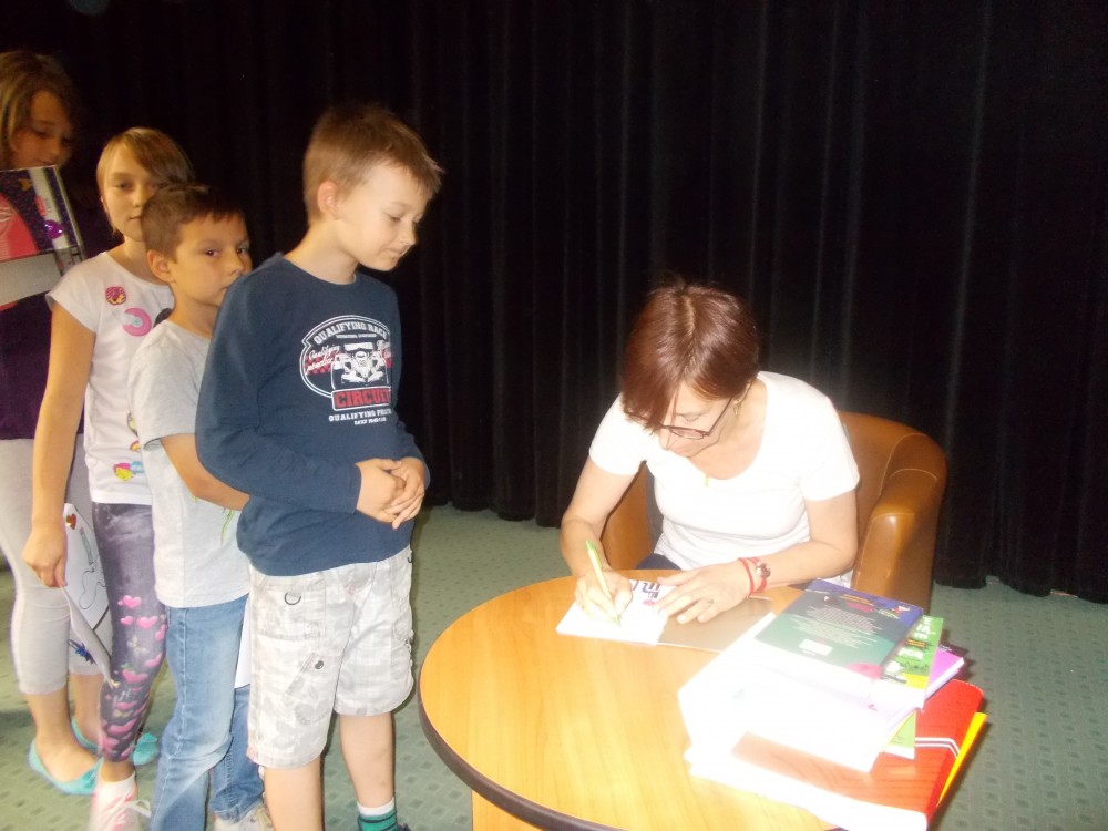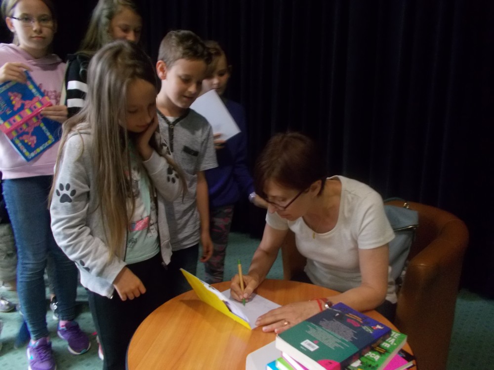 W czwartek mieliśmy ogromną przyjemność uczestniczyć w spotkaniu autorskim ze znaną dzieciom pisarką, Małgorzatą Strękowską-Zarembą. Autorka, m.in. przygód małego detektywa Kefirka, opowiedziała nam o swoich książkach: skąd czerpie inspiracje, jaki znany raper pomagał jej tworzyć rymowane fragmenty, które można znaleźć w jej tekstach i wiele innych. Nie zabrakło również pytań od publiczności, niektórych zaskakujących ;-)