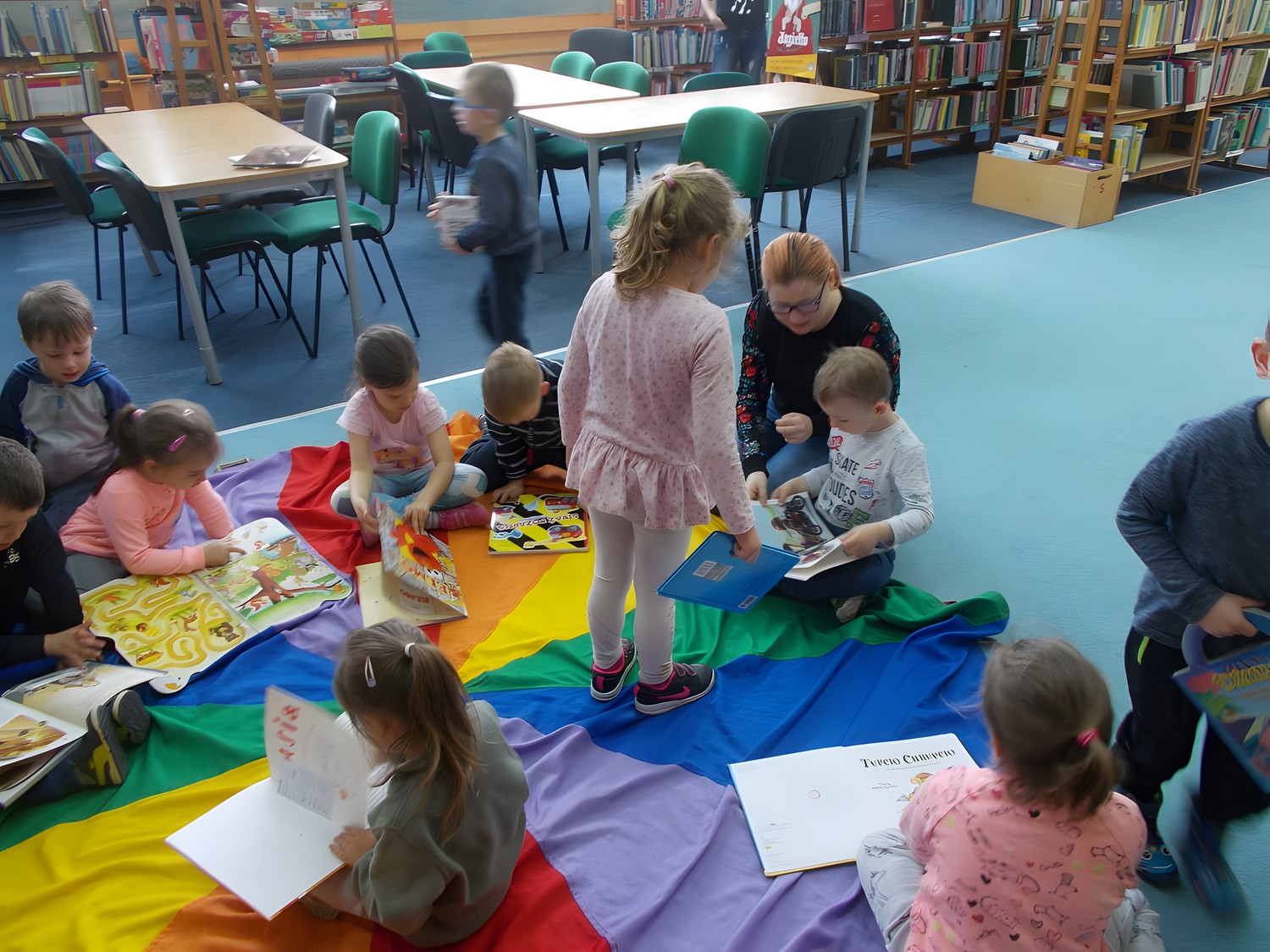 23 kwietnia obchodzimy Światowy Dzień Książki. W ten szczególny dzień, zaprosiliśmy czteroletnią grupę „Skrzatów” z Przedszkola nr 13 w Koszalinie. Dzieci wysłuchały opowiadania „O dzieciach, które kochają książki”,autorstwa Petera Carnavasa o rodzinie, która nie miała wiele. Mimo że mieszkali w skromnej przyczepie campingowej bez wygód, mieli dużo książek, dzięki którym mogli wspólnie spędzać czas. Następnie nasi specjalni goście wzięli udział w specjalnie przygotowanych dla niech zabawach o ulubionych bohaterach, znanych i lubianych bajek i baśni. Radości i śmiechu nie zabrakło.