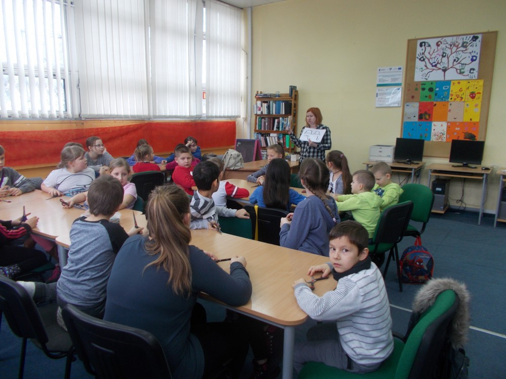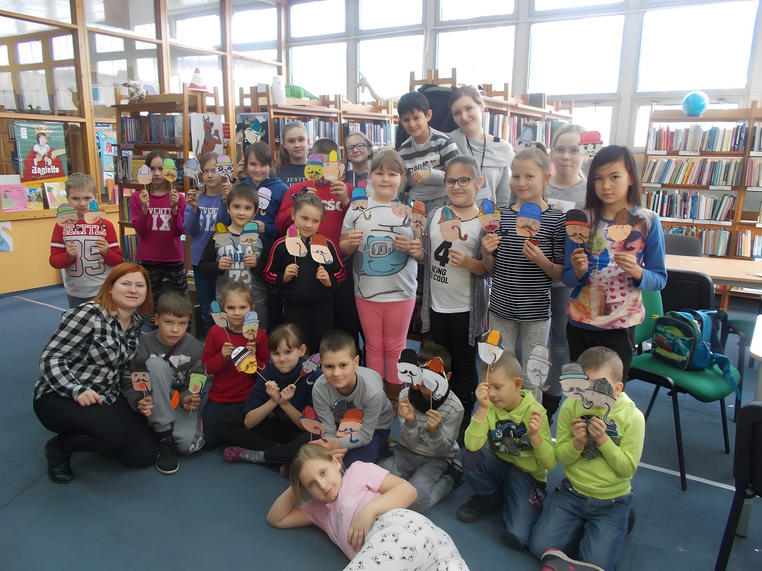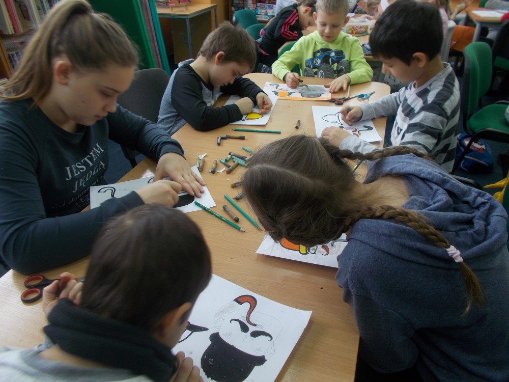 Ostatni dzień zajęć feryjnych w bibliotece rozpoczęliśmy zajęciami plastycznymi, ruchowymi oraz przypomnieliśmy sobie postacie książkowych detektywów.