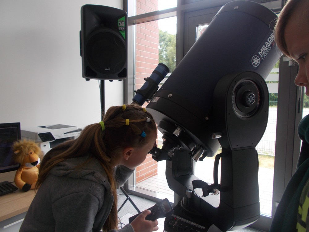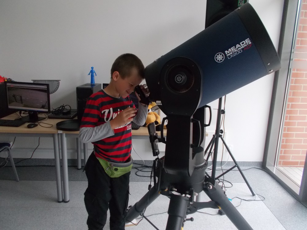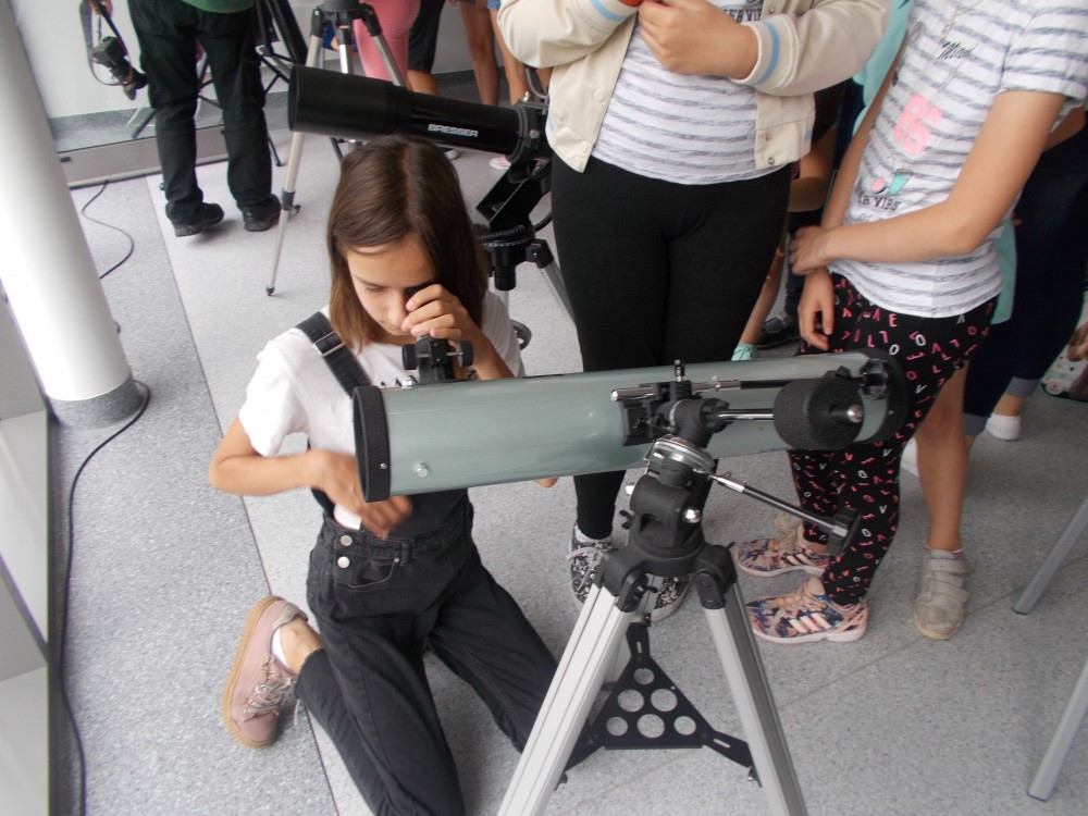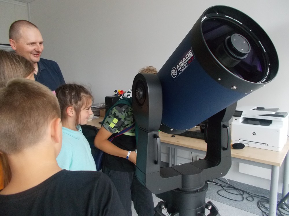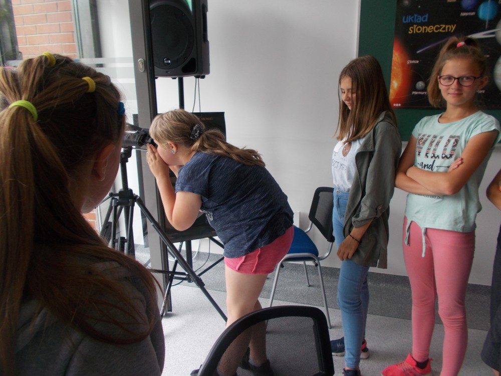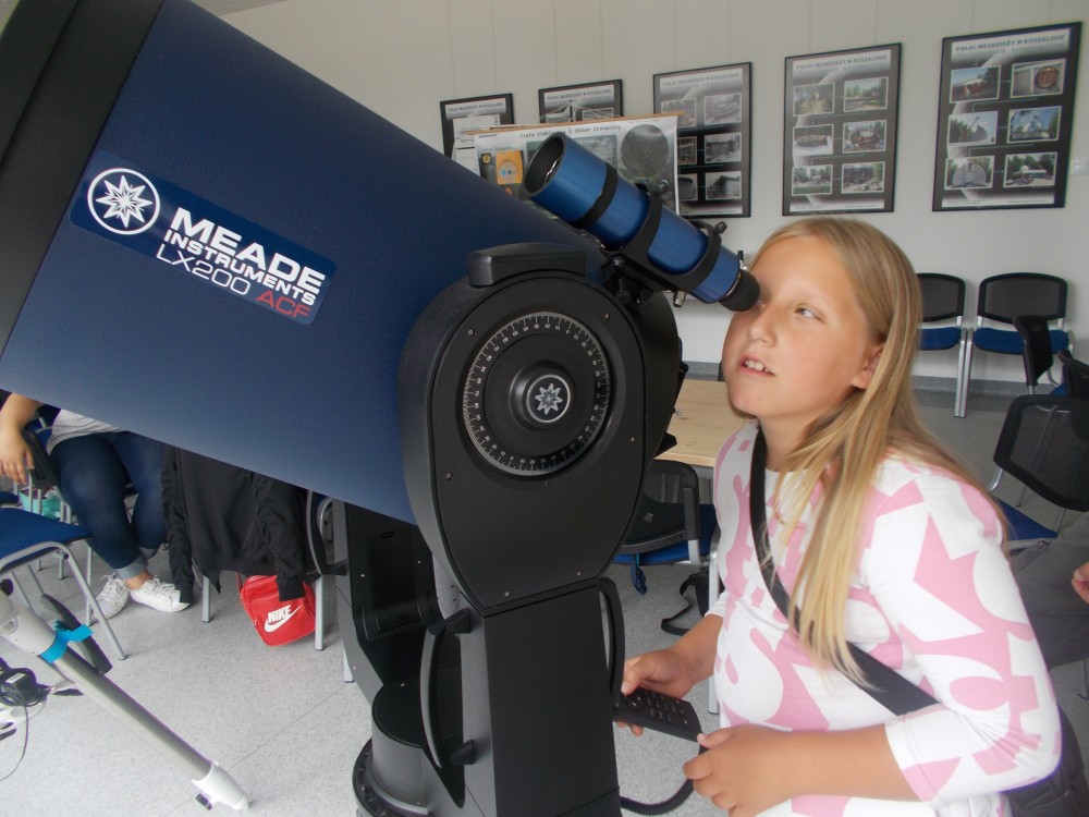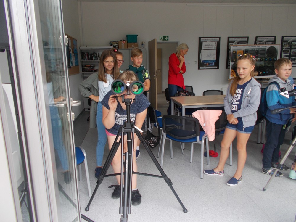Drugiego dnia naszego wakacyjnego wypoczynku wybraliśmy się na wycieczkę do Obserwatorium Astronomicznego w Koszalinie. Dzieci miały okazję oglądać świat przez lornetki, lunety i teleskopy. Udało nam się nawet wejść na samą górę, do kopuły, w której mieści się główny teleskop. Dzieci z ciekawością odkrywały fakty o otaczającym nas wszechświecie. Okazało się, że wśród uczestników naszych zajęć są dzieci, które mają dużą wiedzę o kosmosie i marzą o zawodzie astronauty. Na zakończenie pobytu dzieci otrzymały odznakę małego astronauty. To był bardzo udany dzień.