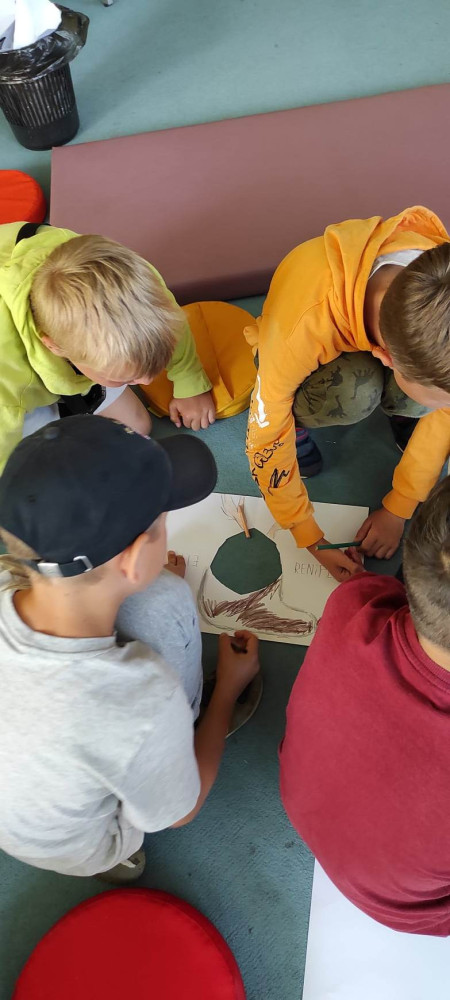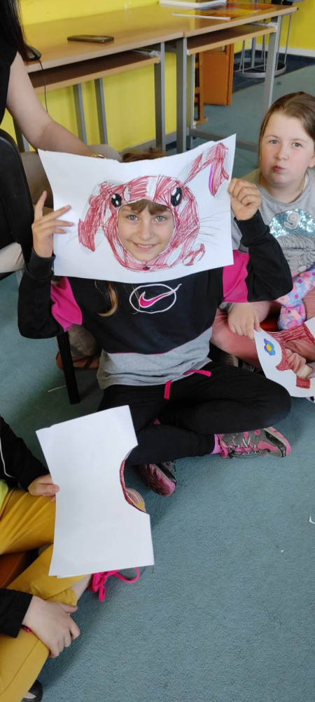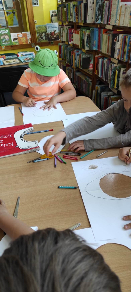 Dziś rano odwiedzili nas drugoklasiści ze Szkoły Podstawowej nr 5 w Koszalinie, by wziąć udział w interaktywnych zajęciach, związanych z twórczością Herve Tulleta. Czytaliśmy książkę „Naciśnij mnie”, ale w nieoczywisty sposób, bo to dzieci wykonywały polecenia z książki, zaczarowując świat, składający się tylko z kropek. Nasi goście mieli też okazję poznać „Książkę z dziurą”, a nawet sami wykonać swoje prace i wcielić się w rolę ilustratorów, uruchamiając przy tym swoją wyobraźnię.