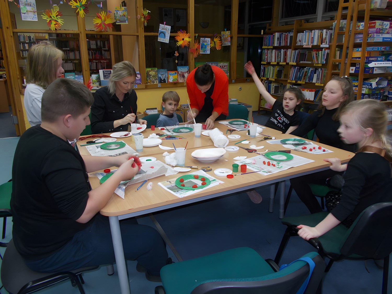 W czwartkowe popołudnie spotkaliśmy się na zabawach literacko-plastycznych, aby wykonać gwiazdkowe ozdoby. Na naszych bibliotecznych półkach można znaleźć mnóstwo książek o tematyce świąt, zarówno dla dzieci jak i dorosłych. Dzieci wysłuchały przepięknej opowieści ,,Zły kocurek, Gwiazdka" Nicka Bruela, która opowiada o tym, co jest najważniejsze podczas świąt. Prezenty, suto zastawione stoły? Nie. To dzięki naszej rodzinie i przyjaciołom możemy poczuć prawdziwą magię Świąt.