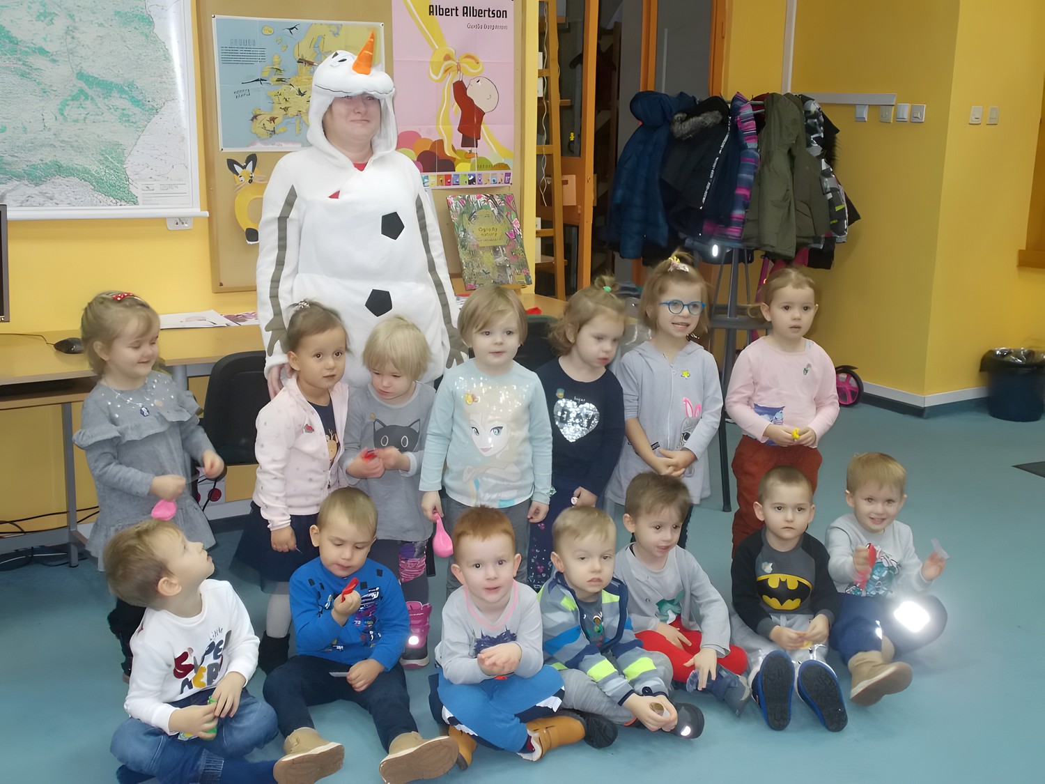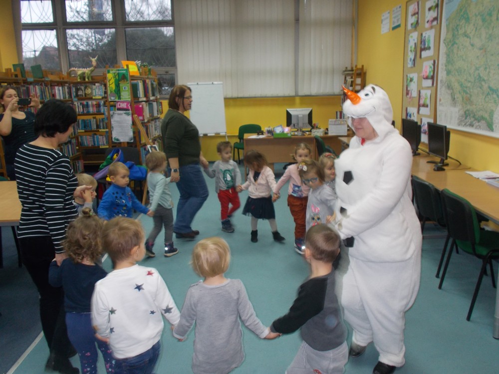 Dziś do naszej biblioteki przybyły z pierwszą wizytą trzyletnie „Biedronki” z Przedszkola Integracyjnego w Koszalinie. Przedszkolaki dowiedziały się, w jaki sposób można wypożyczyć książki w bibliotece i jak można w niej spędzić czas. Rozmowa o świątecznych symbolach i wysłuchanie książki „Święta Tupcia Chrupcia” Campanella Marco były pretekstem do rozmowy o zbliżających się świętach i dziecięcych marzeniach. Podczas spotkania „Biedronki” odwiedził przybysz z wyobraźni, Olaf, bałwan dobrze znany dzieciom z „Krainy Lodu”, który porwał dzieci do zabawy.