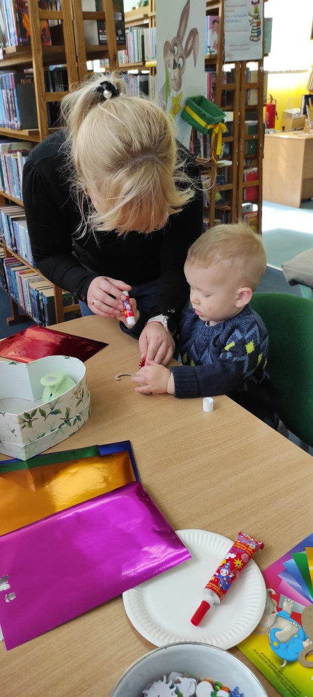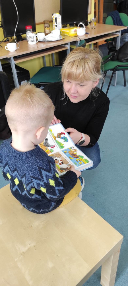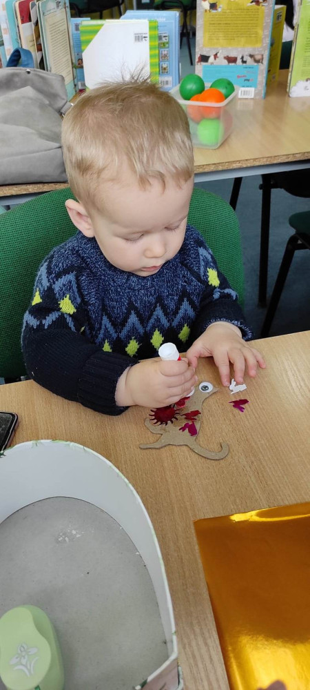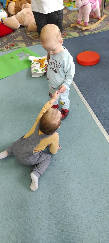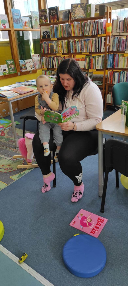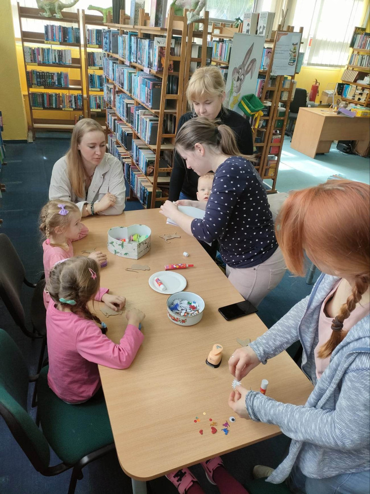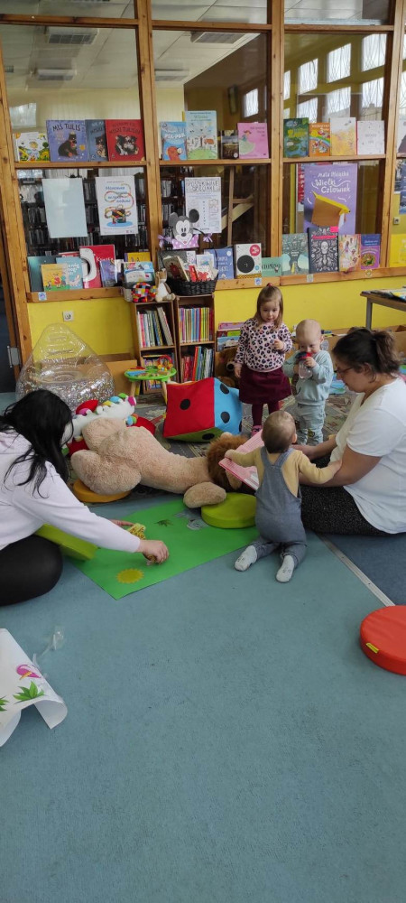 Dzisiaj rano odwiedziły nas maluchy, by wysłuchać opowiadania o zagubionym psie „Szukając Marudka” z teatrzyku kamishibai. Następnie dzieci wraz ze swoimi mamami ozdobili tekturowe zwierzęta oraz przykleili naklejki z wizerunkiem zwierząt na wspólną pracę plastyczną. W naszym Klubie Zaczytanego Rodzica nie zabrakło czasu na wspólne zabawy najmłodszych oraz na prezentację serii książek o zwierzętach „Opowiem Ci mamo”.