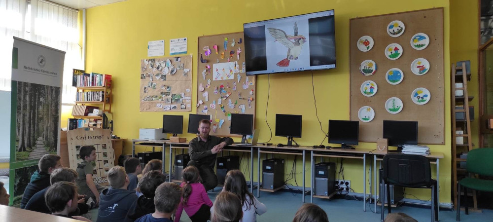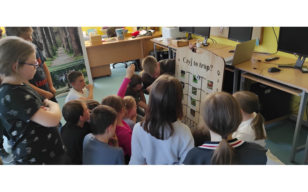 Dzieje się w naszej bibliotece w czasie Tygodnia Bibliotek! Dziś odwiedził nas pan Karol, leśnik z Nadleśnictwa Karnieszewice. Przeprowadził zajęcia dla trzecioklasistów ze Szkoły Podstawowej nr 5 w Koszalinie. Dzieci dowiedziały się, czym zajmuje się leśnik i poznały ciekawostki o różnych gatunkach zwierząt. Nasz gość pokazał dzieciom tablicę edukacyjną z tropami zwierząt. Okazało się, że wśród dzieci znalazło się kilkoro pasjonatów, którzy sporo wiedzą o lesie.