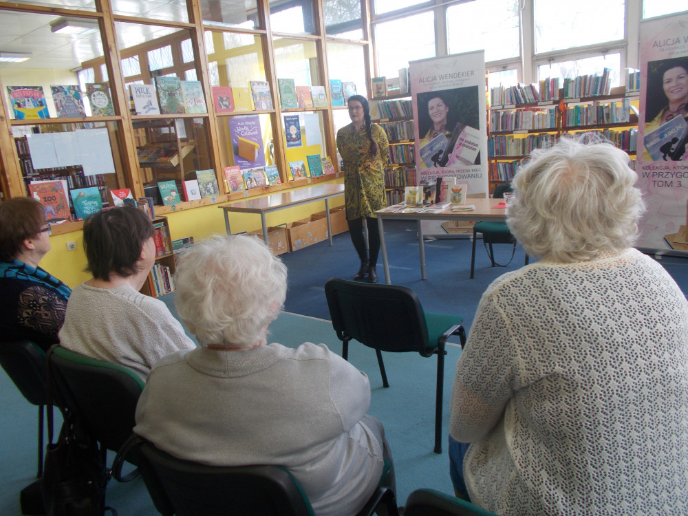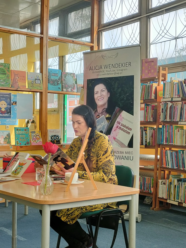Tydzień bibliotek rozpoczął się od niezwykle inspirującego spotkania z koszalińską pisarką i poetką, Alicją Wendekier. Pani Alicja jest autorką książek zarówno dla dzieci i dorosłych. Tym razem spotkanie było skierowane dla dorosłych czytelników. Podczas literackiego spotkania, nie zabrakło opowiadań pisarki o jej doświadczeniach życiowych, które ukierunkowały ją do napisania swoich powieści, „Mamusiu…. ja chcę żyć…” oraz „Nie szukałam, a znalazłam”. Autorka w wzruszający sposób opowiadała o elementach biograficznych w swojej twórczości. Oprócz tego, Alicja Wendekier napisała książki dla najmłodszych, do których zainspirował ją, jej ukochany wnuk, Oliwier. Dziecięce książki to cykl książek zatytułowany: Historyjki Babci Ali: „Jak Oli został przedszkolakiem”, „Oli i Koparka. Przygoda w parku”, oraz „Będę miał siostrzyczkę”