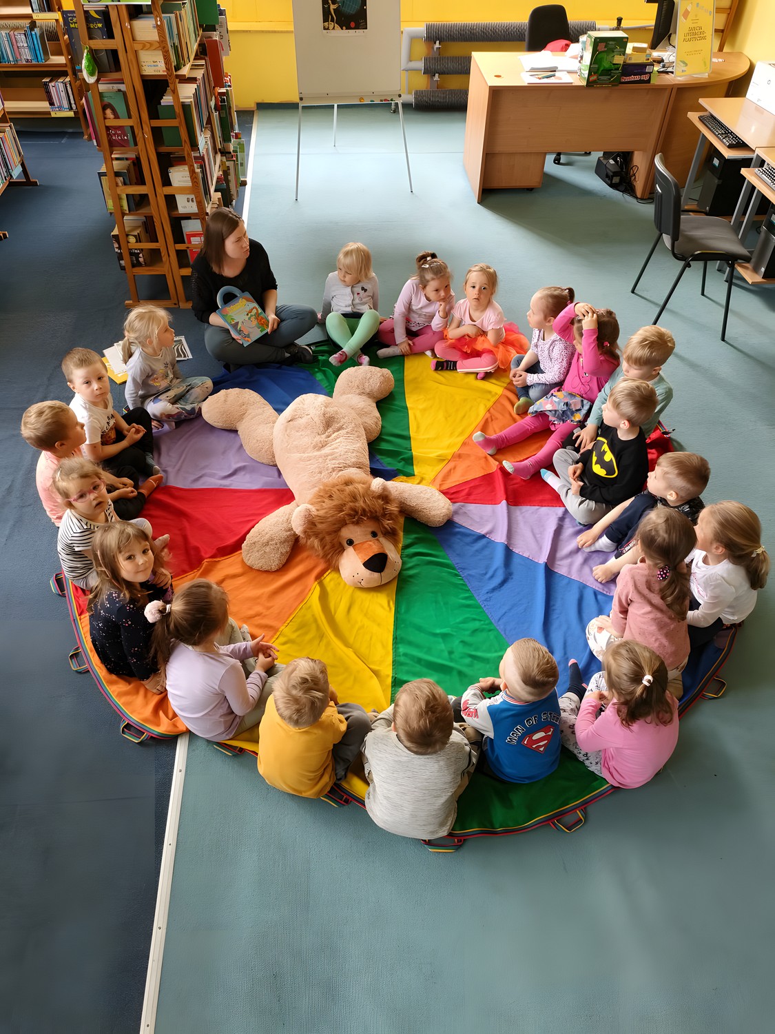 Dziś ostatni dzień Tygodnia Bibliotek z okazji którego odwiedziła nas trzyletnia grupa „Kotków” z Przedszkola nr 13 w Koszalinie. Przedszkolaki miały okazje porozmawiać o dzikich zwierzętach i wykazały się dużą wiedzą na ich temat. Nasi goście wysłuchali opowiadania pt. „Dżungla” w tłumaczeniu Marty Jakubik i wzięły udział w wesołych zabawach.