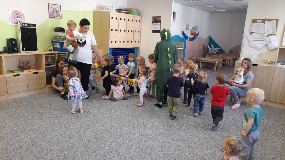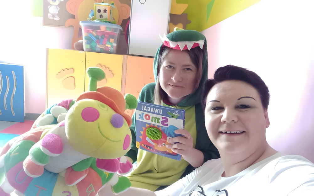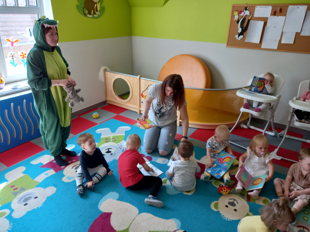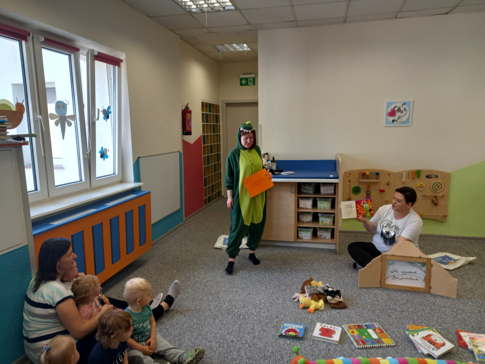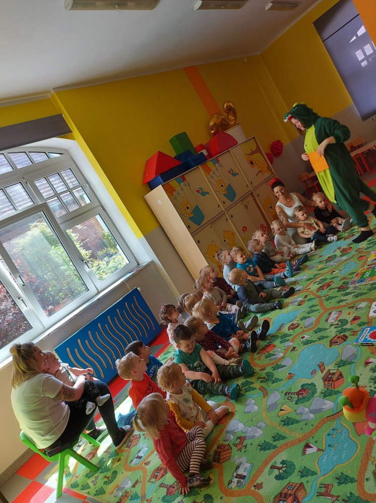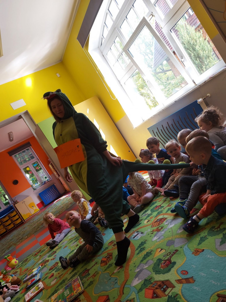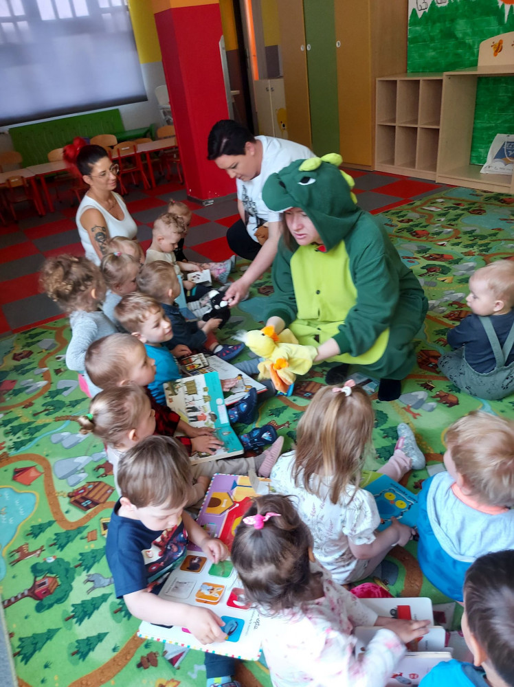Z okazji zakończenia Tygodnia Czytania Dzieciom razem z bibliotekarką Kamilą z Filii nr 3, odwiedziłyśmy dzieci ze żłobka "Filo" w Koszalinie. Okazało się że "Niedźwiadki", "Puchatki", "Smerfy" i "Biedronki" uwielbiają książki. Przeczytałyśmy maluchom opowiadanie pt. "Smok""Uwaga smok" wydawnictwa Wilga oraz przedstawiłyśmy teatrzyk Kamishibai, podczas którego maluchy wysłuchały opowiadania Jana Brzechwy "Na wyspach Bergamutach". Bibliotekarki zaprezentowały ciekawe książeczki oraz pobawiły się pluszowymi pacynkami z maluszkami.