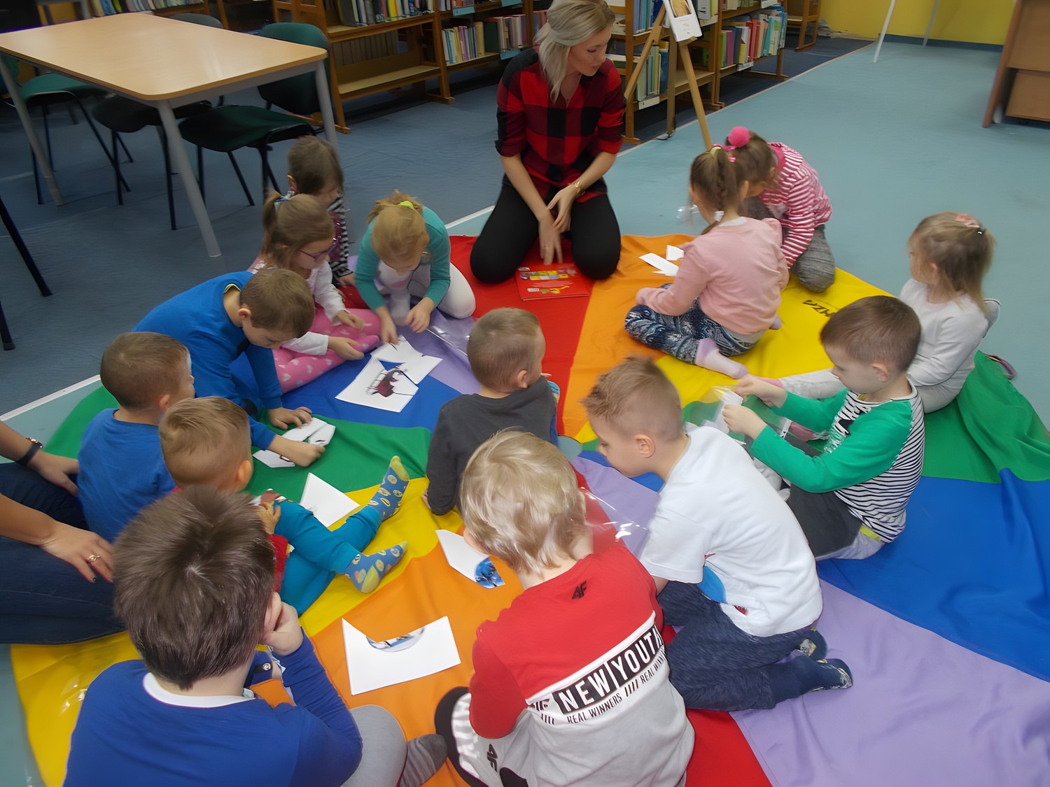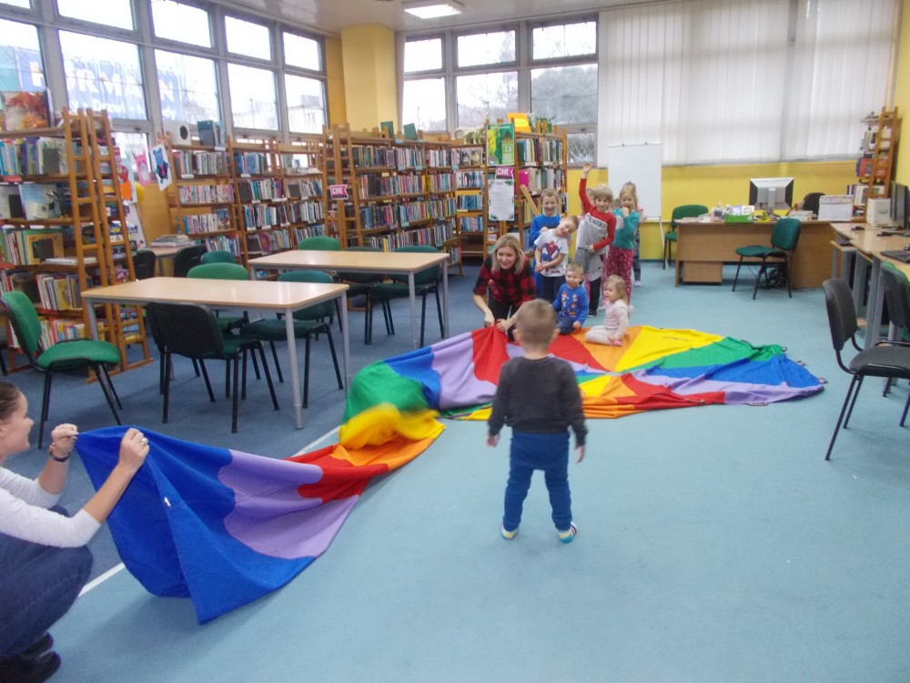 Dzisiejsze zabawy w bibliotece z dziećmi z Przedszkola ,,Elf" odbyły się w iście świątecznym nastroju. Przedszkolaki szukały wigilijnych atrybutów, opowiadały o świątecznych skojarzeniach i wysłuchały opowiadania ,,Święta Tupcia Chrupcia" Elizy Piotrowskiej. Na koniec zajęć dzielne przedszkolaki przeszły przez tunel animacyjny, dzięki czemu mogły poczuć się niczym Święty Mikołaj, który co roku przechodzi kominem do naszych domów, zostawiając wymarzone prezenty pod choinką.