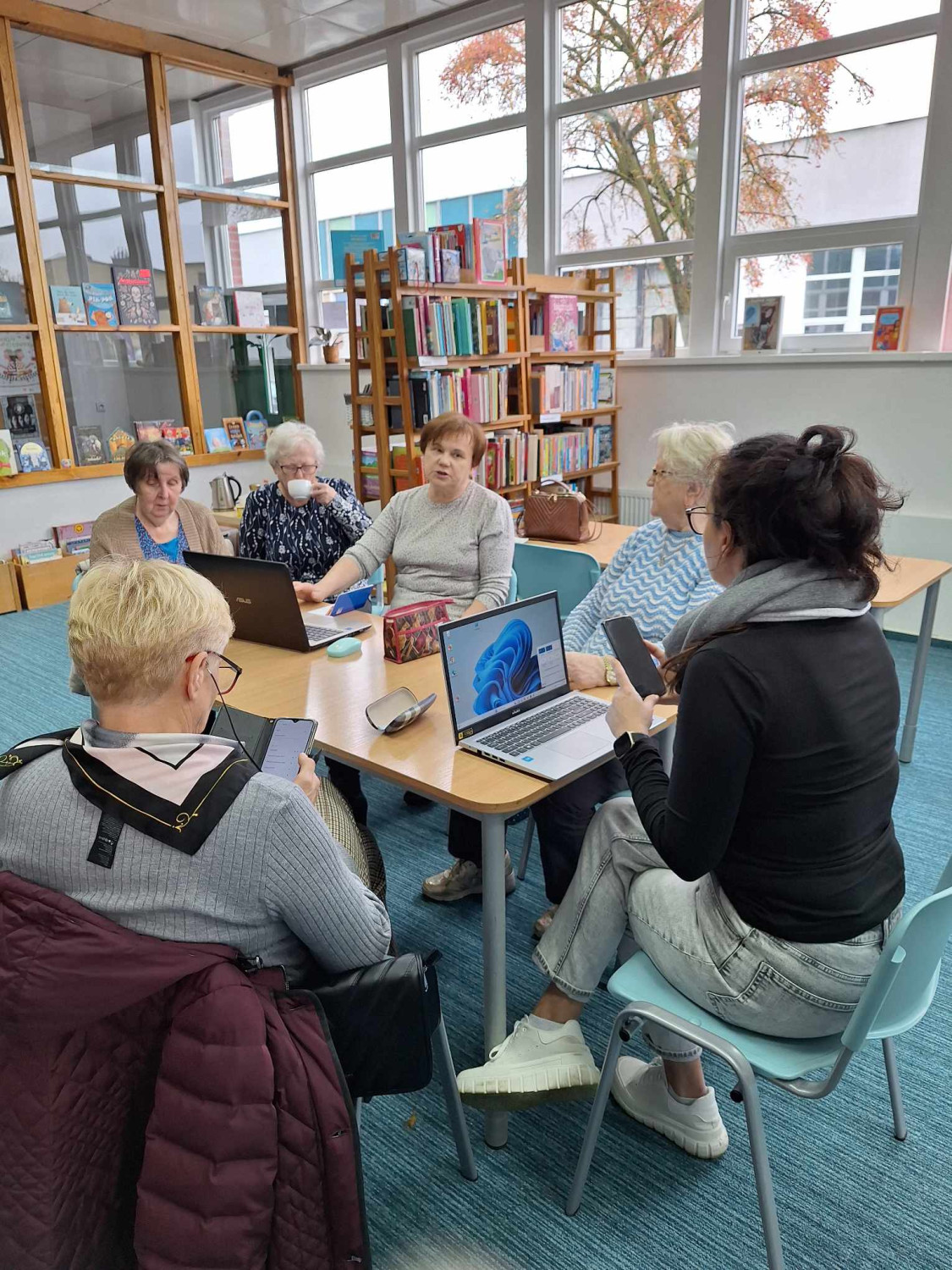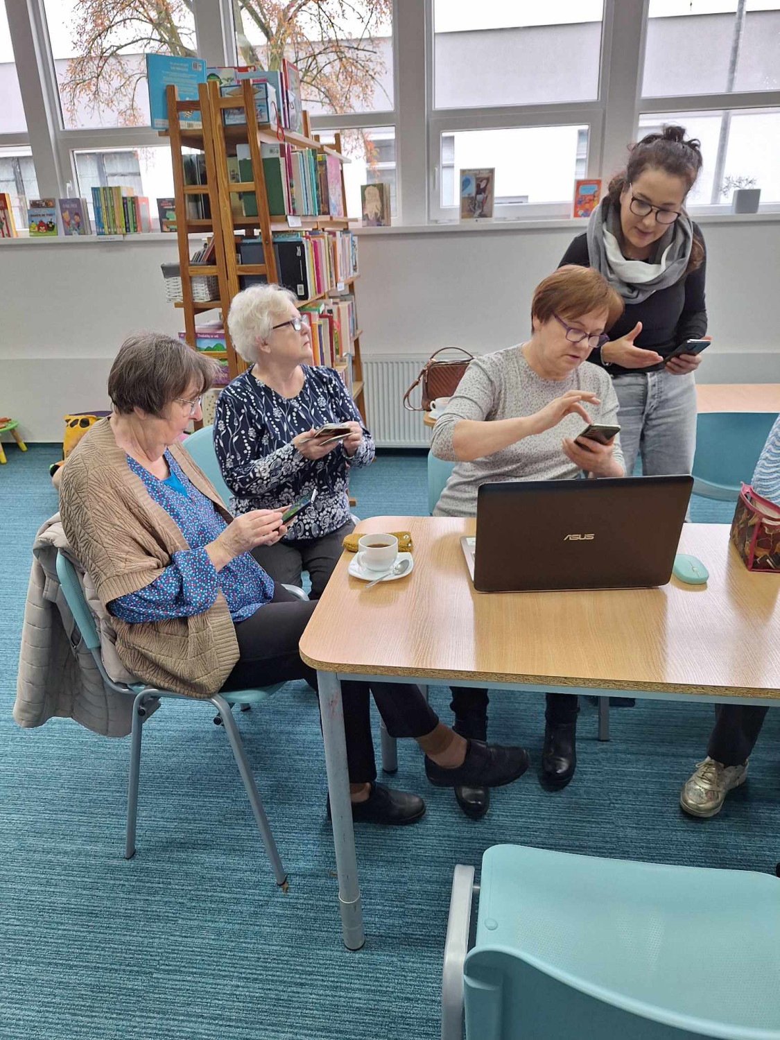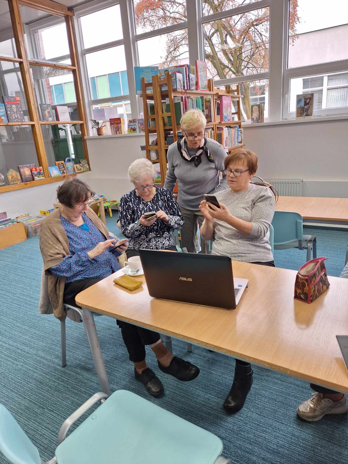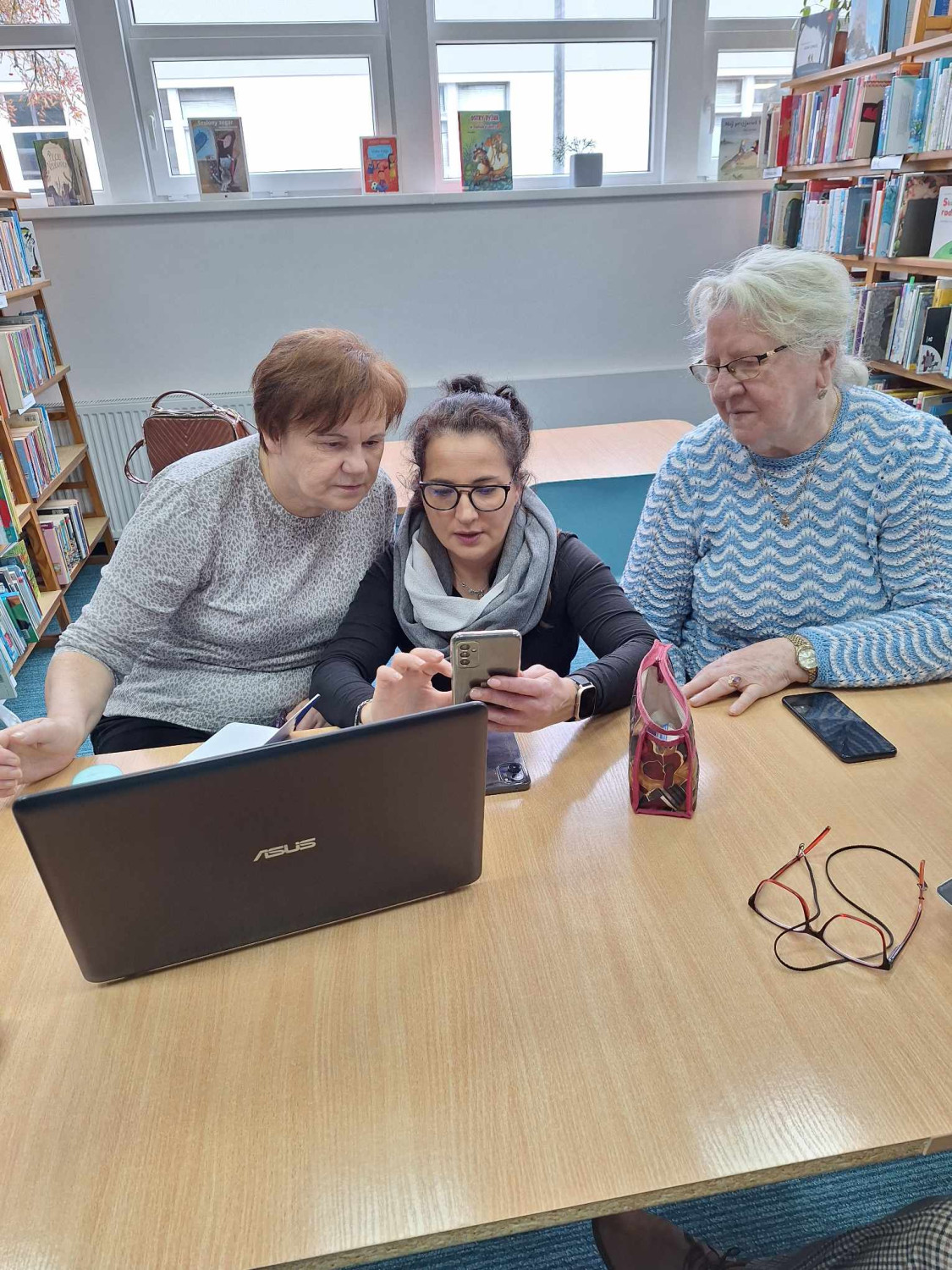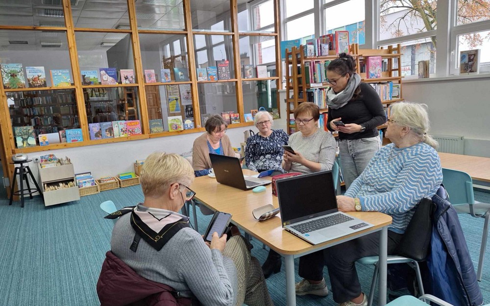 Nasze seniorki idą z duchem czasu, dlatego z wielkim entuzjazmem wzięły udział w warsztatach smartfonowych w naszej bibliotece. Prowadząca pokazała im , jak posługiwać się aplikacjami i łączyć się internetowo z laptopem. Panie wyszukiwały też aplikacje związane z ich zainteresowaniami, jakimi jest rękodzieło.
