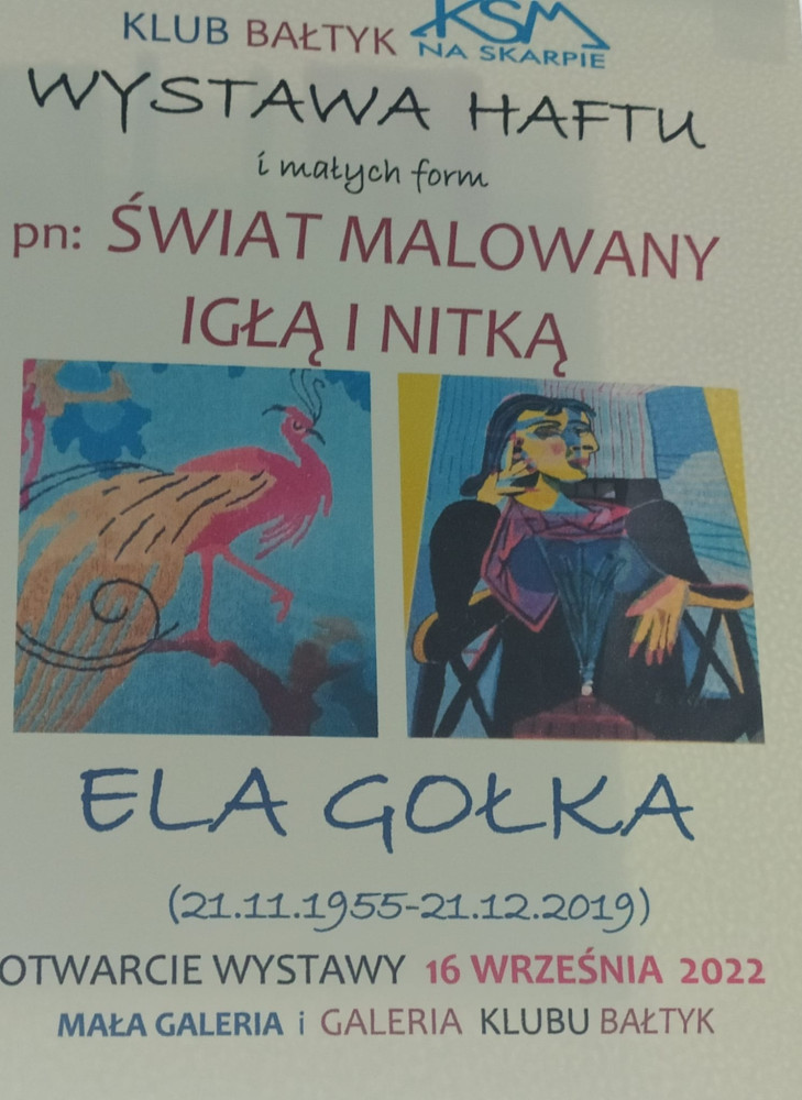W piątek, 16 września 2022 roku w Klubie Osiedlowym Bałtyk odbył się wernisaż wystawy prac śp. Eli Gołki, wieloletniej bibliotekarki, założycielki Klubu "12 oczek" , miłośniczki rękodzielnictwa i pieszych wędrówek w góry. Wystawa mieści ponad 70 haftów, które są prawdziwymi dziełami sztuki. Podczas inauguracji wystawy nie zabrakło wzruszających wystąpień i wspomnień artystki. Wystawę odwiedziło mnóstwo osób, które znały i podziwiały Elę.