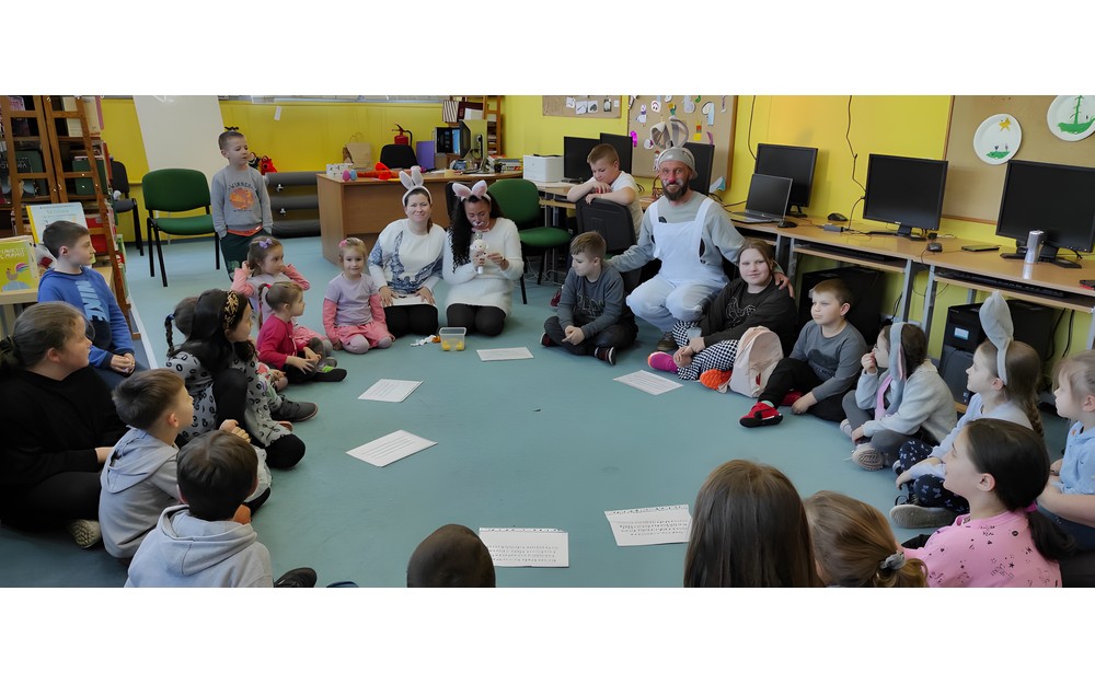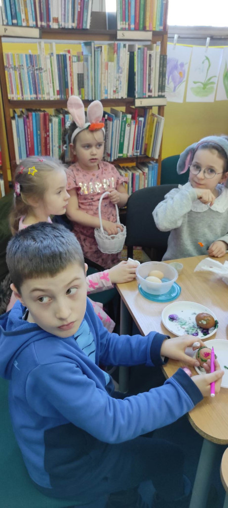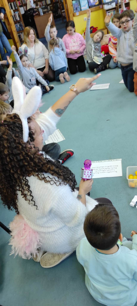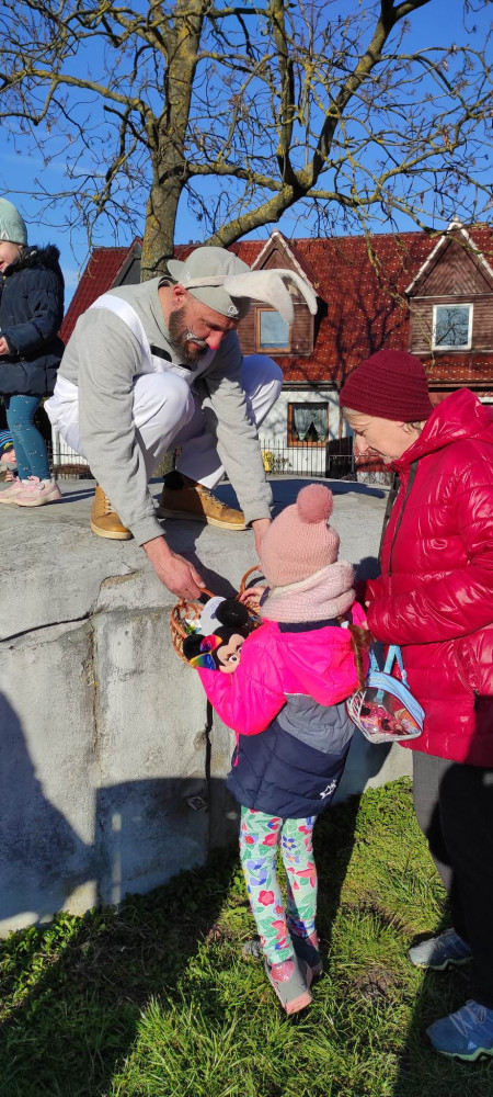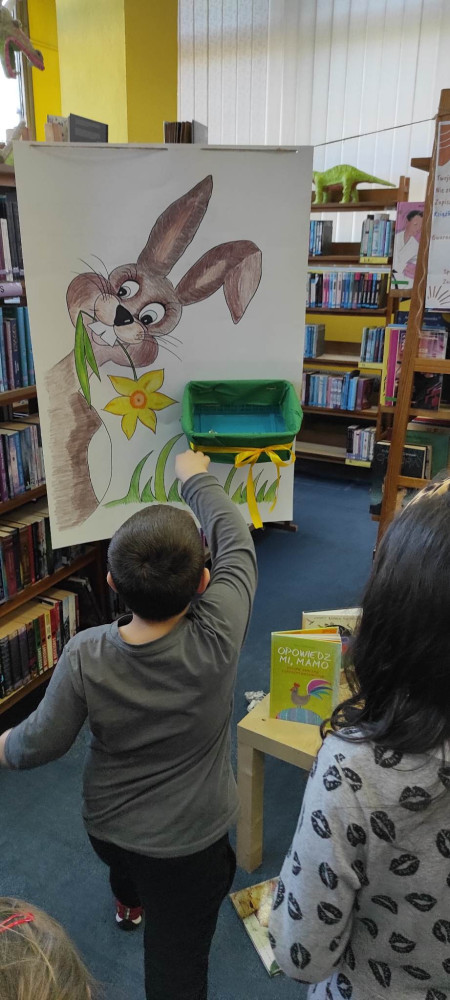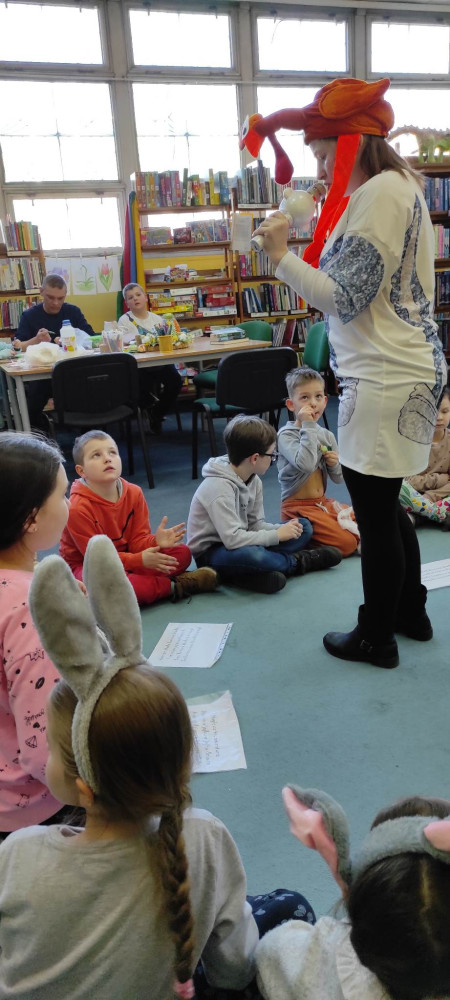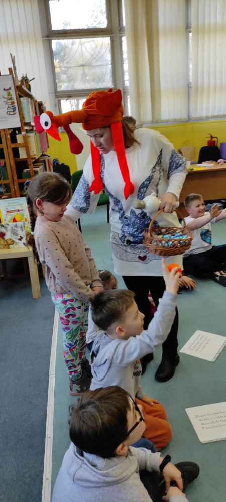 W przed wielkanocną środę działo się w naszej bibliotece bardzo dużo. Odwiedzili nas lokalni zające i panie Zającowe, by zorganizować dla dzieci popołudniową imprezę wielkanocną . Pani kura Marta na początku spotkania czytała „Kurcze blade” autorstwa Wandy Chotomskiej, a następnie pani Zającowa zadawała dzieciom zagadki. Atrakcją było trafianie do celu do koszyczka wielkanocnego zajączka i zabawa z chustą. Dzieci pod nadzorem pani Ewy ozdabiały piękne wielkanocne pisanki. Lokalny zając z pomocnikami ukrył prezenty na łonie natury, gdzie maluchy z rodzicami chętnie szukali jaj. Jak zwykle imprezę wsparł nieoceniony Przemysław Piotrowiak w roli zająca oraz nasza piękna pani zając, Anita Osińska. Bardzo dziękujemy pani Agnieszce Wieszczyckiej oraz panu Piotrowi Iwat za ufundowanie słodkich upominków dla naszych najmłodszych czytelników. Niezmiernie nas cieszy, że mamy tak zaangażowaną społeczność lokalną, a mieszkańcy Osiedla Morskie kolejny już raz udowodnili, że można na nich liczyć. Frekwencja przerosła najśmielsze oczekiwania, a uśmiech nie schodził nam z twarzy.
