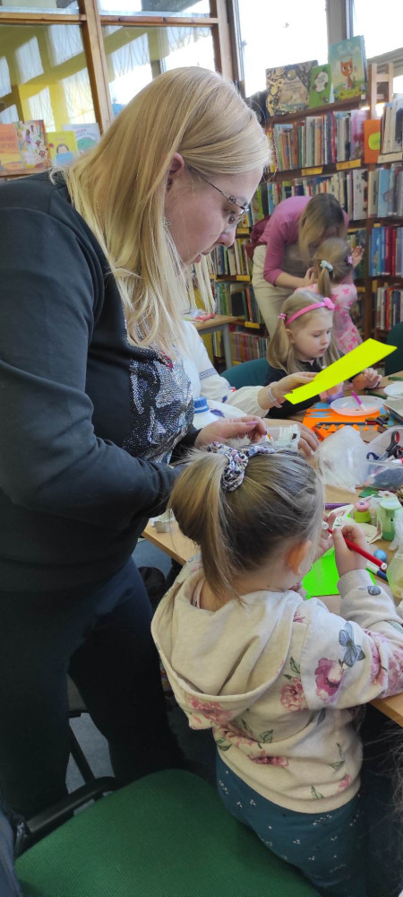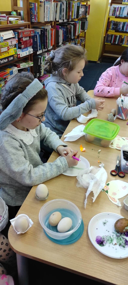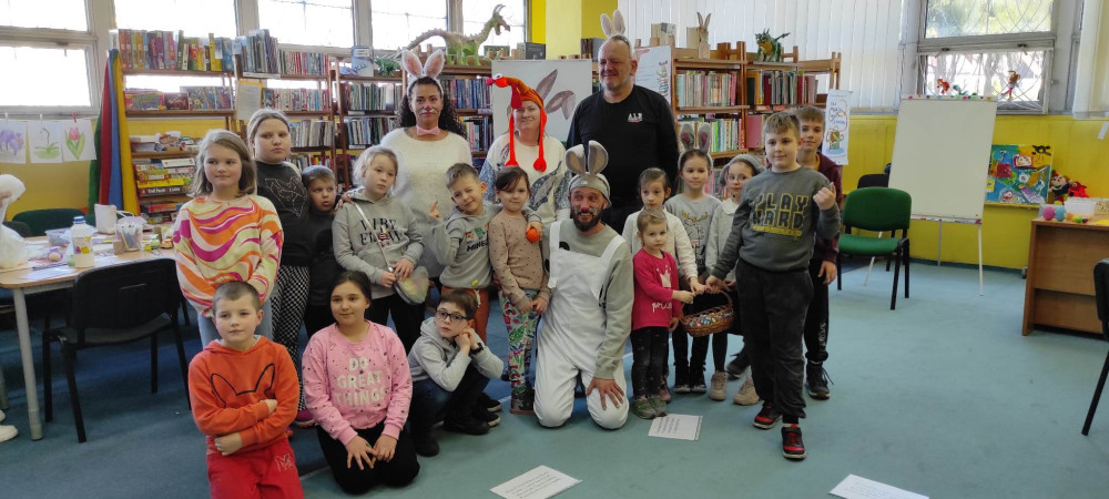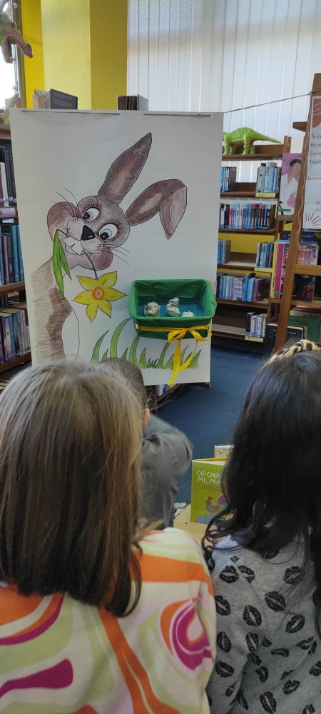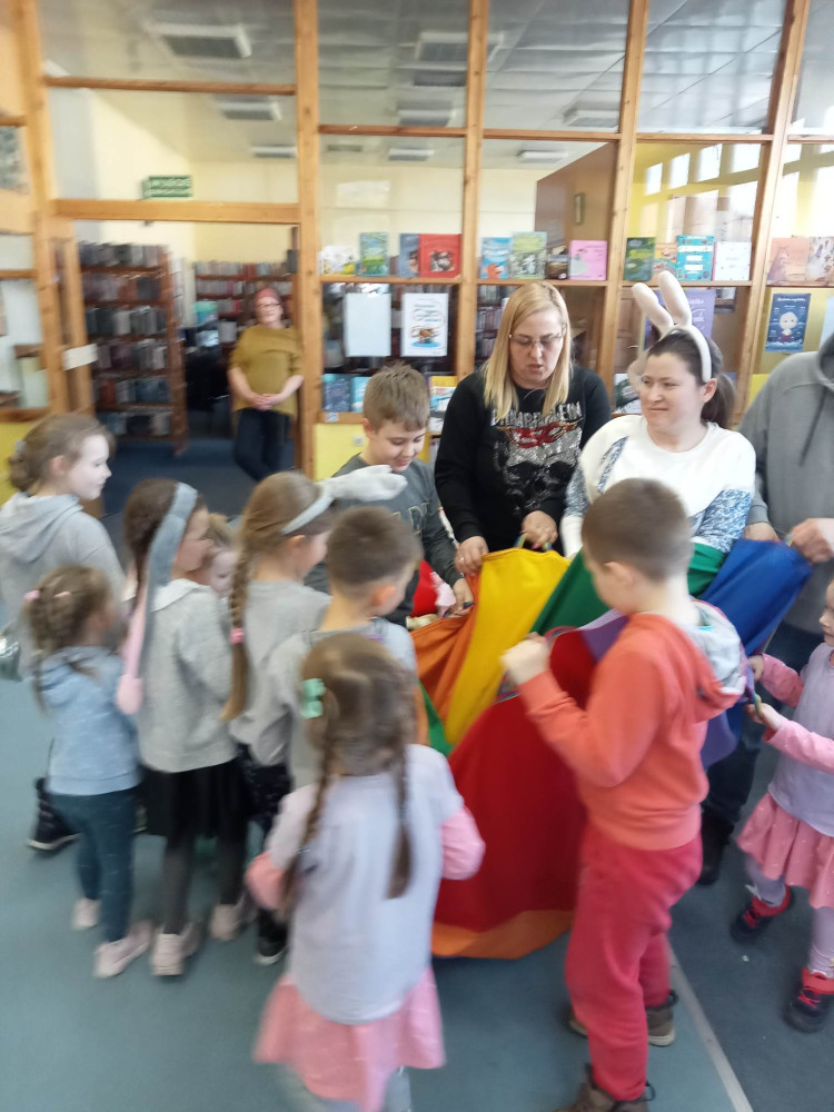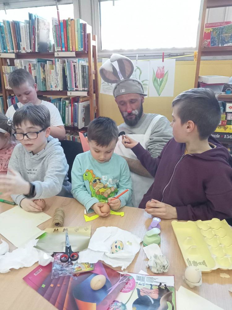W przed wielkanocną środę działo się w naszej bibliotece bardzo dużo. Odwiedzili nas lokalni zające i panie Zającowe, by zorganizować dla dzieci popołudniową imprezę wielkanocną . Pani kura Marta na początku spotkania czytała „Kurcze blade” autorstwa Wandy Chotomskiej, a następnie pani Zającowa zadawała dzieciom zagadki. Atrakcją było trafianie do celu do koszyczka wielkanocnego zajączka i zabawa z chustą. Dzieci pod nadzorem pani Ewy ozdabiały piękne wielkanocne pisanki. Lokalny zając z pomocnikami ukrył prezenty na łonie natury, gdzie maluchy z rodzicami chętnie szukali jaj. Jak zwykle imprezę wsparł nieoceniony Przemysław Piotrowiak w roli zająca oraz nasza piękna pani zając, Anita Osińska. Bardzo dziękujemy pani Agnieszce Wieszczyckiej oraz panu Piotrowi Iwat za ufundowanie słodkich upominków dla naszych najmłodszych czytelników. Niezmiernie nas cieszy, że mamy tak zaangażowaną społeczność lokalną, a mieszkańcy Osiedla Morskie kolejny już raz udowodnili, że można na nich liczyć. Frekwencja przerosła najśmielsze oczekiwania, a uśmiech nie schodził nam z twarzy.