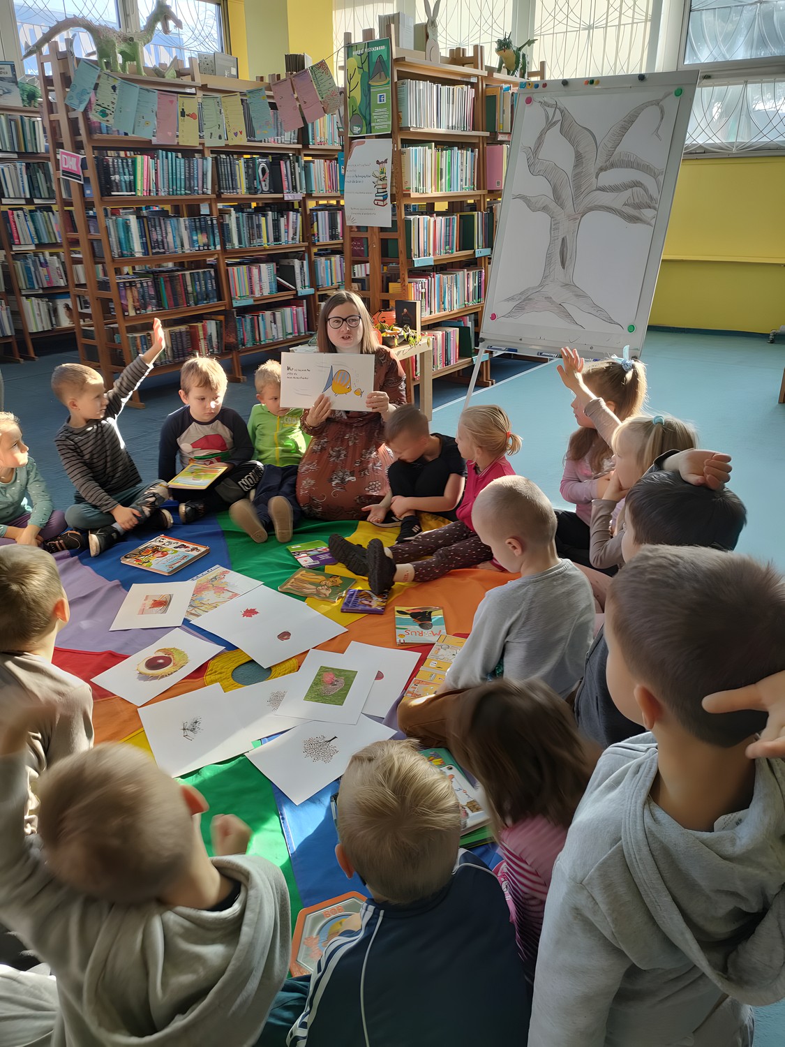 Na koniec intensywnego tygodnia w bibliotece, odwiedziły nas pięcioletnie „Pingwinki” z Przedszkola nr 13 w Koszalinie. Była to ich pierwsza wizyta w bibliotece, podczas której mogły samodzielnie wypożyczyć książkę oraz poznać szczegóły, jak zostać czytelnikiem. Maluchy wysłuchały opowiadania „Ciekawski George w bibliotece” Margaret Rey. Oprócz tego szukały w bibliotece atrybutów jesieni i wzięły udział w wesołych zabawach i zagadkach. Na koniec spotkania, dzieci poznały robota Filipa, z udziałem którego będą organizowane następne zajęcia, na co przedszkolaki nie mogą się już doczekać.
