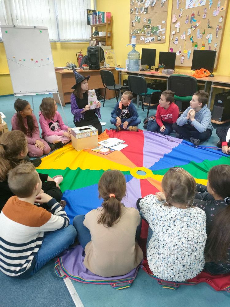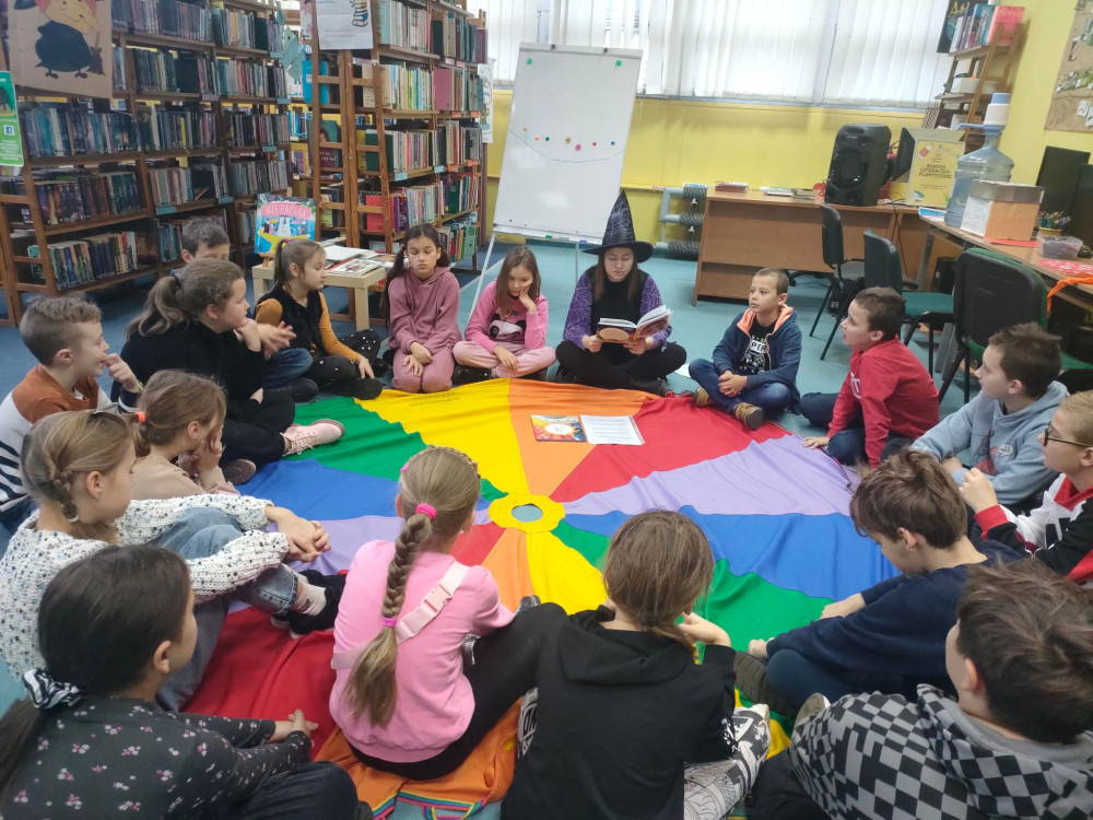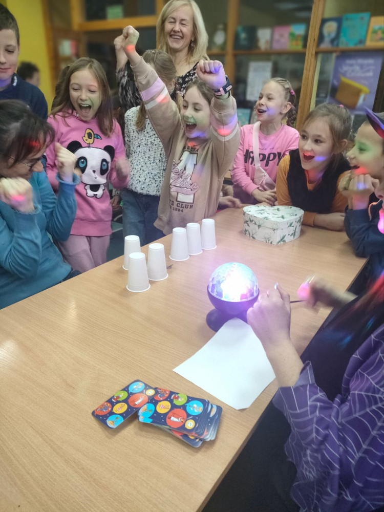 Odwiedzili nas dzisiaj kolejni trzecioklasiści, by poznać swoją przyszłość. Uczniowie Szkoły Podstawowej nr 5 wysłuchali opowiadania Renaty Piątkowskiej „Gdyby jajko mogło mówić i inne opowiadania” dowiadując się ciekawostek na temat Andrzejek i Katarzynek. Nasi goście tak, jak ich wczorajsi poprzednicy również mieli okazję wziąć udział we wróżbach czarownicy Martity. Z zawiązanymi oczami, wybierali imię przyszłej wybranki, poznali swój horoskop na wesoło ze zbioru opowiadań Marcina Brykczyńskiego "12 miesięcy" .Martita postawiła też dzieciom tarota, dała dzieciom do losowania kubki z symbolem ślubu czy bogactwa oraz cukierki z wróżbą. Na koniec dzieci rzucały do czarownicy gazetami, wróżąc czy spełni się ich największe marzenie