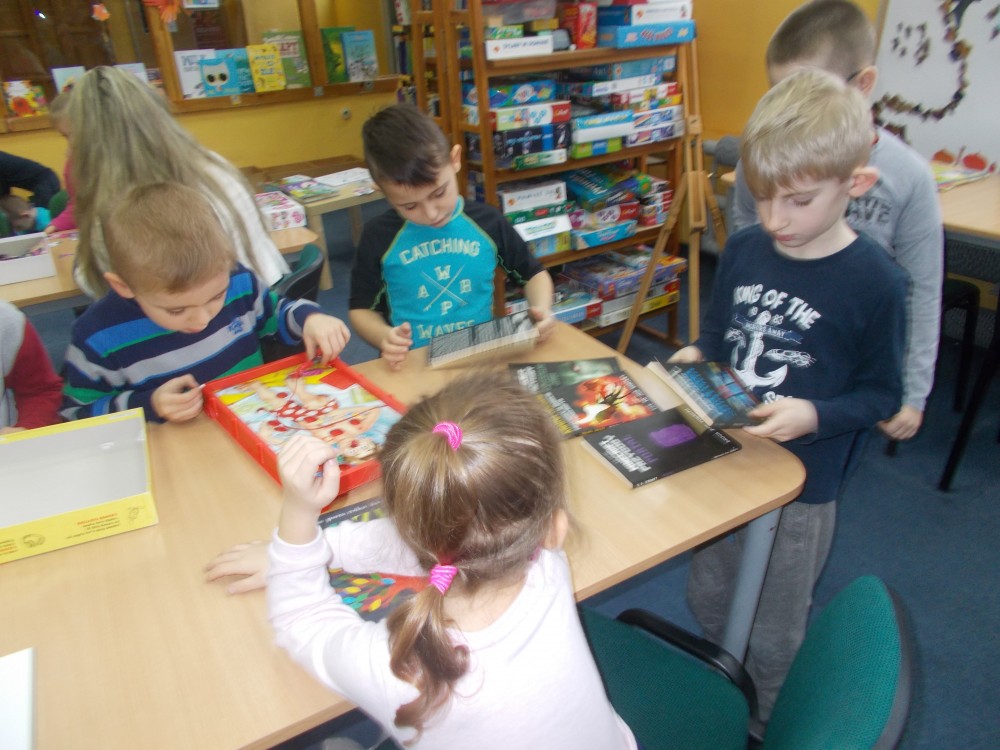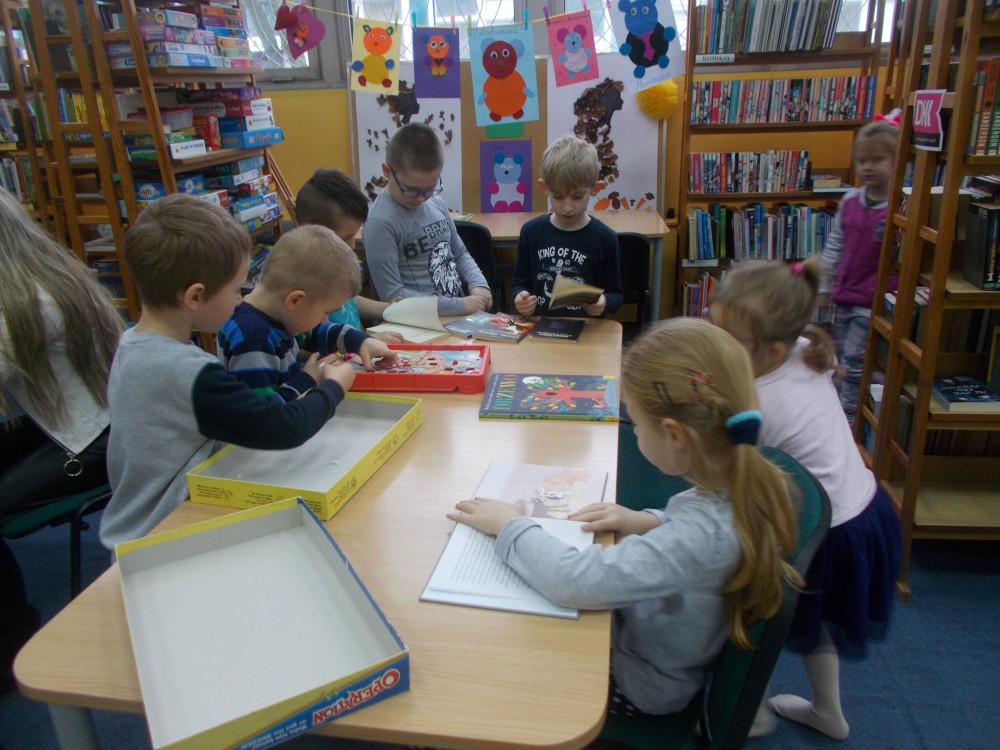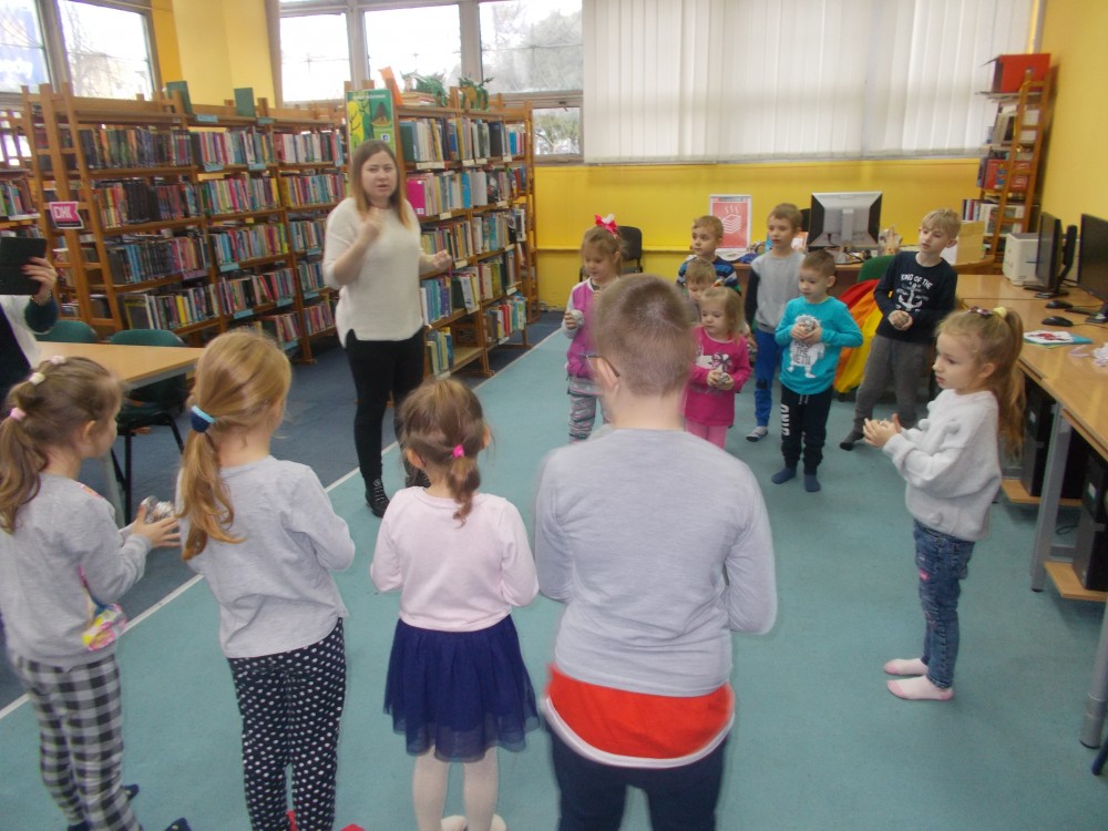 W zimowy poranek przyszły do nas dzieci z Przedszkola „Elf w Koszalinie. Przedszkolaki wysłuchały książeczki „Z górki na pazurki” Desbordes Astrid, w której zwierzęta urządziły sobie wyścig sankami. Bohaterowie historii zgodnie stwierdzili, że nieważny jest wynik zawodów, a przyjaźń, co potwierdzili nasi mali słuchacze. Zimowe zagadki i zabawy nastroiły dzieci pozytywnie do obecnej pory roku.