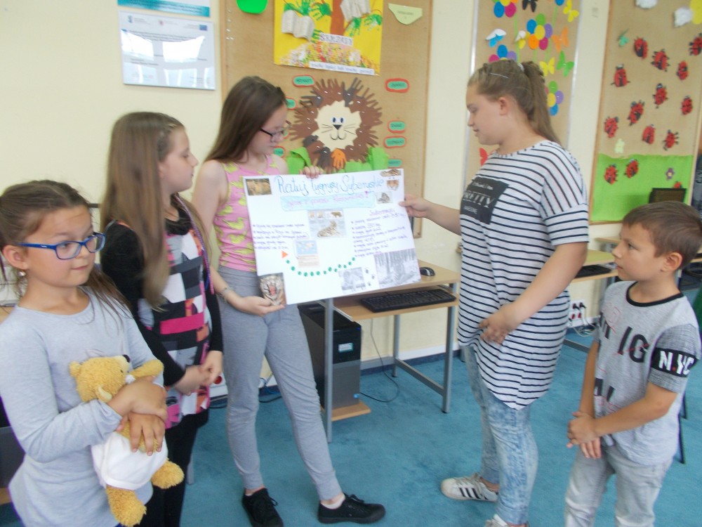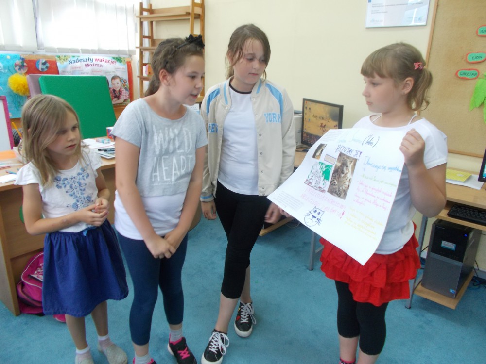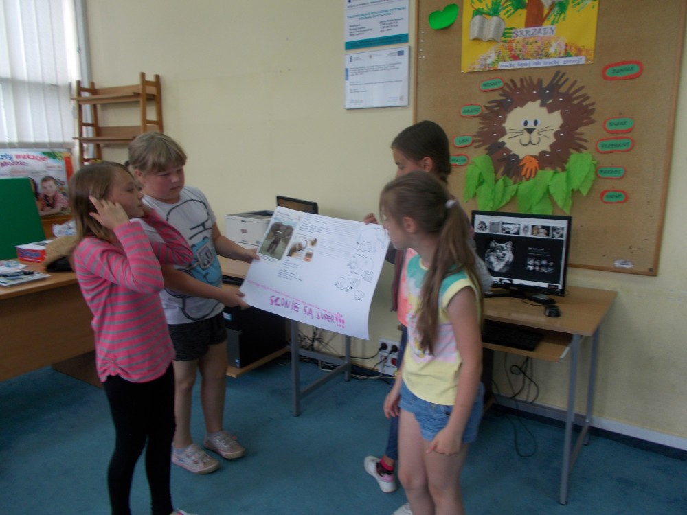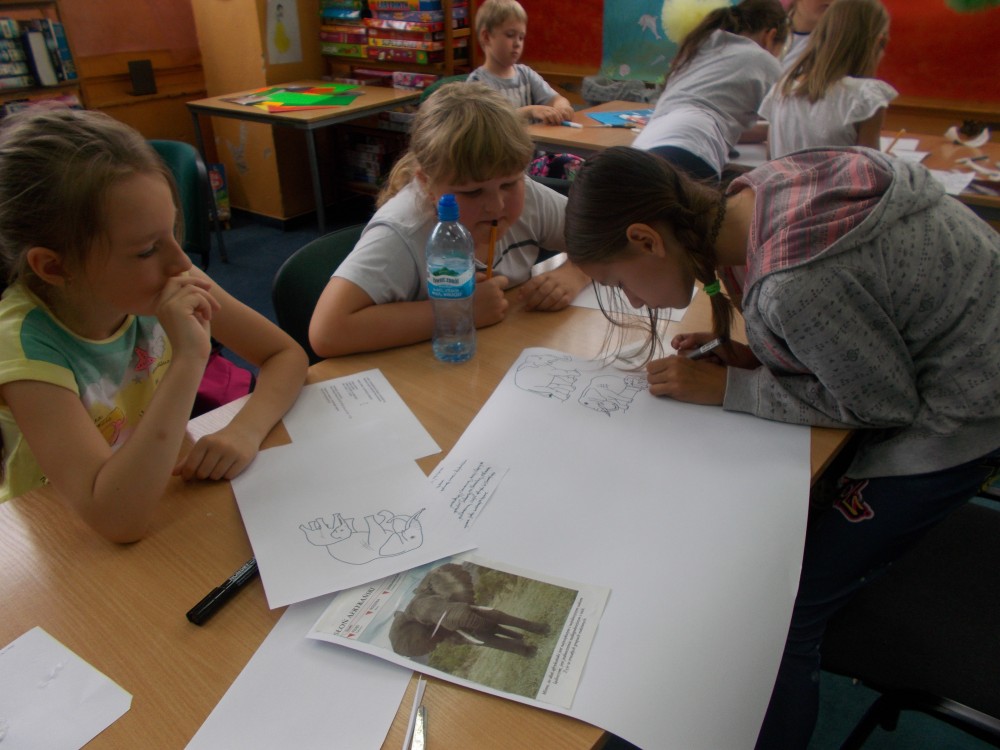 W piątek, 21 lipca tematem naszych zajęć były podróże i przygody „Neli małej reporterki”. Dzieci wypowiadały się, czy wolą czytać o podróżach, czy jak Nela wziąć w plecak najpotrzebniejsze rzeczy i ruszyć na wyprawę. Dyskusja była wieloaspektowa, bo nasi mali miłośnicy przygód podejmowali też tak ważną kwestie, jak bezpieczeństwo podczas podróży. Pozostając w tym klimacie bawiliśmy się w poszukiwanie skarbów w plecaku i morskie gry i zabawy. Los zwierząt nie jest naszym dzieciom obojętny, dlatego wykonały one plakaty „Na ratunek zagrożonym zwierzętom”. Ten emocjonujący dzień na długo pozostanie naszej grupie w pamięci.
