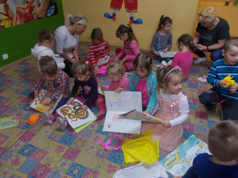 W dniu dzisiejszym odwiedziłyśmy dzieci z Przedszkola Anglojęzycznego ,,Elf”. Aby zachęcić najmłodszych do sięgania po książki przeczytałyśmy opowiadanie ,,Nawet nie wiesz jak bardzo cię kocham, kiedy jest zima” Sama McBratney'a, podczas którego dzieci odgadywały rozmaite zagadki. Dla urozmaicenia wizyty zaproponowałyśmy zabawy ruchowe i oczywiście oglądanie przyniesionych przez nas książek.