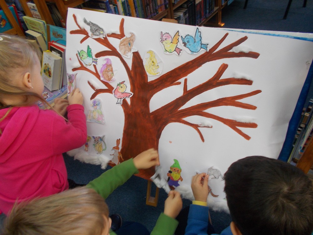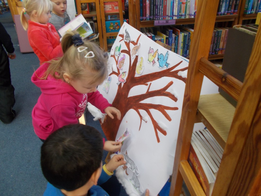 11 stycznia 2017 roku odwiedziła nas grupa „Tygrysków” z Przedszkola nr 13 w Koszalinie. Dzieci rozwiązywały zagadki, słuchały zimowych opowiadań i kolorowały zwierzątka, które wkleiły na wspólną pracę plastyczną. Potem była zabawa ruchowa „Pingwinek”. Dzieci oglądały książki i żegnając się z nami obiecały, że będą naszymi czytelnikami.