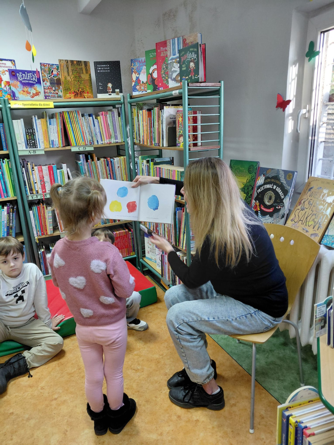 W dzisiejszy poranek odwiedziły nas dzieci z przedszkola TPD w Koszalinie. Wspólnie porozmawialiśmy o naszych ulubionych porach roku i kolorach które je symbolizują. Bibliotekarka przeczytała dzieciom interaktywną książkę pt. „Kolory” Hervé Tullet’a. Na koniec spotkania przedszkolaki wykonały najbardziej kolorową i unikatową na świecie bombkę na choinkę.