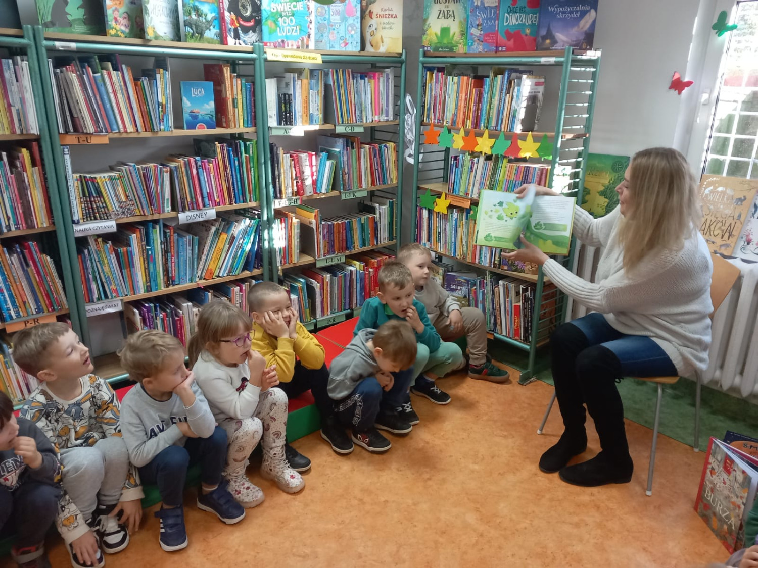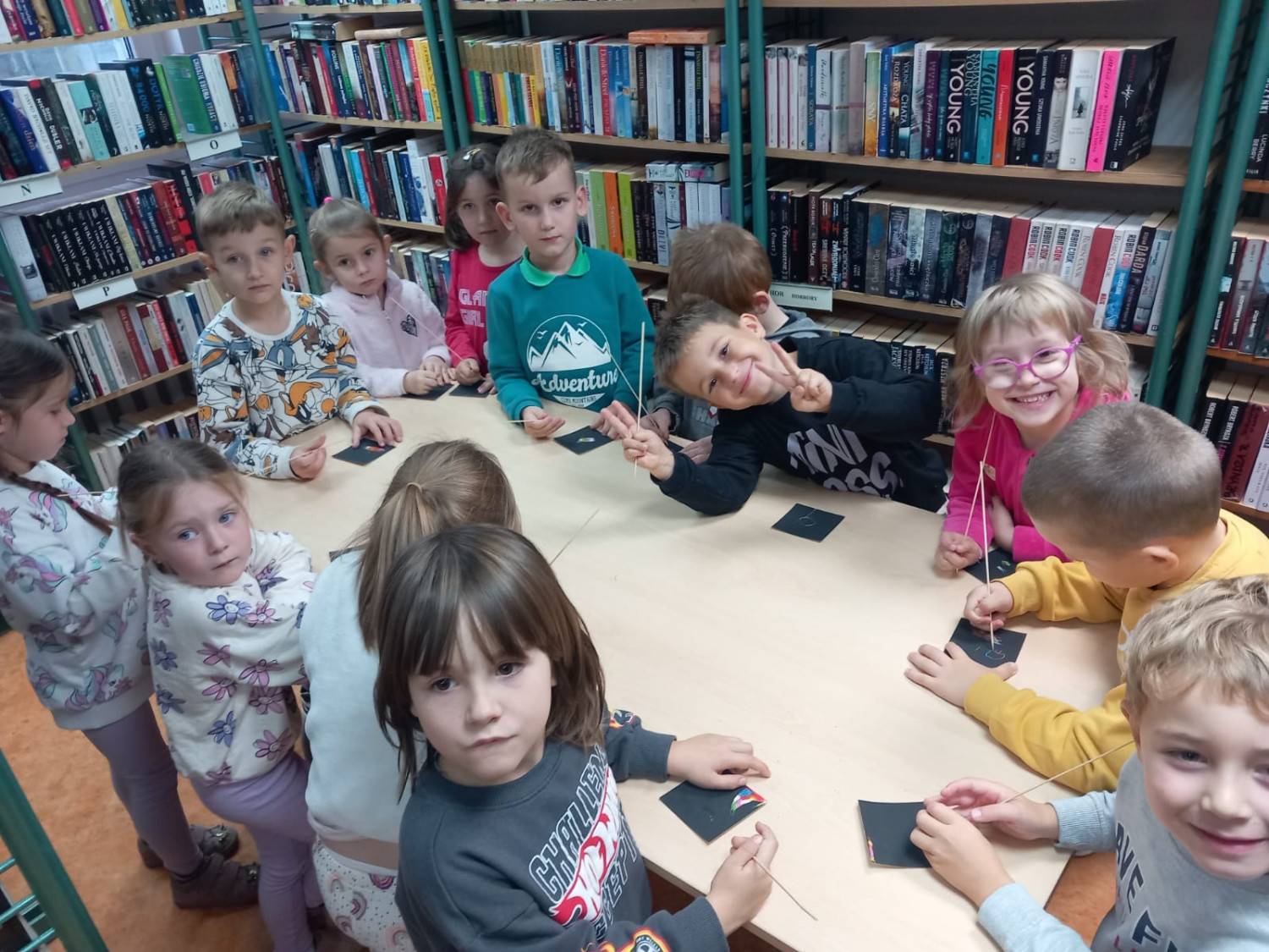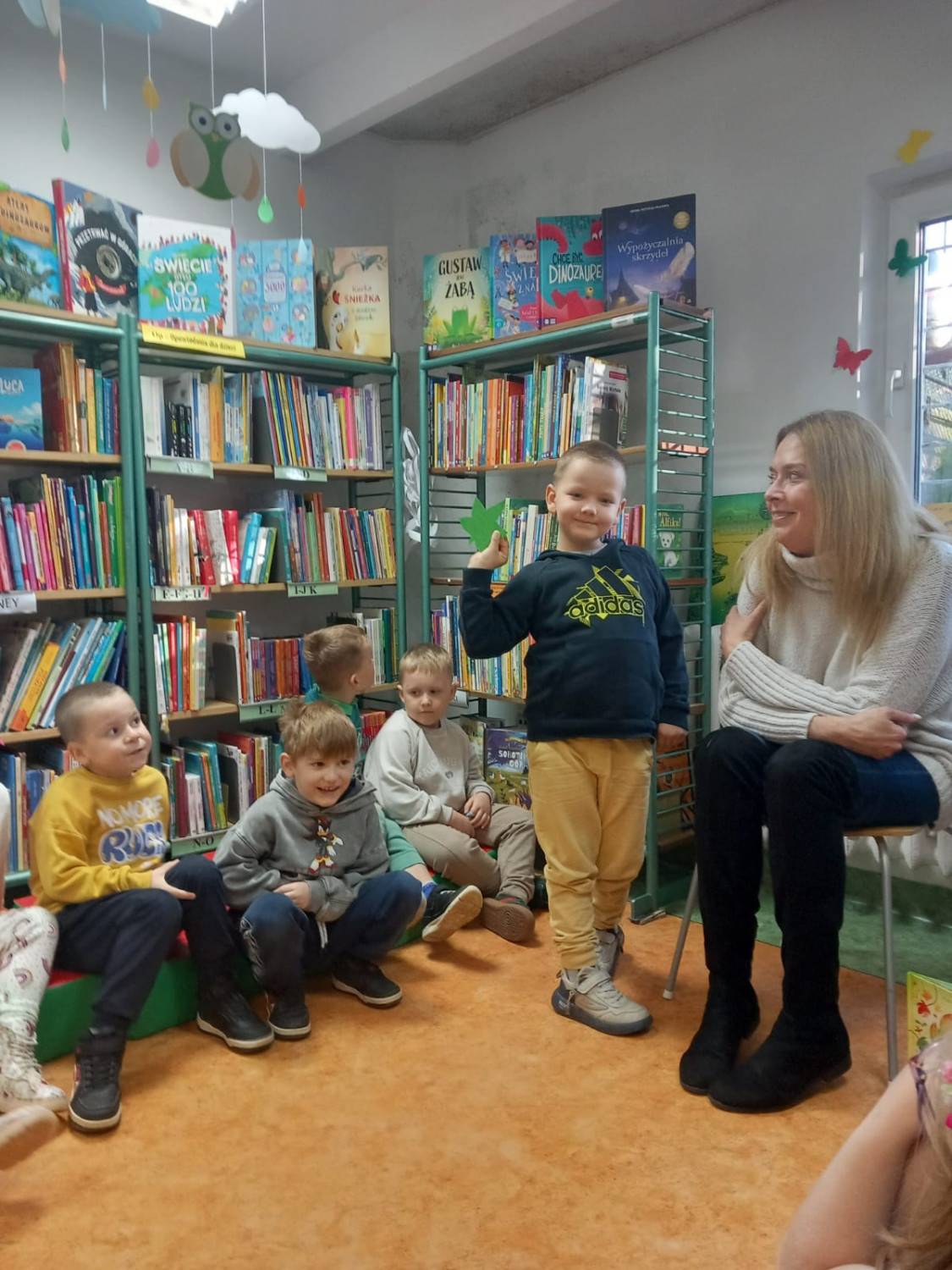W dniu dzisiejszym do naszej filii przybyły uśmiechnięte dzieci z Przedszkola nr 23 w Koszalinie. Przedszkolaki wysłuchały książki Pauliny Płatkowskiej pt. „Życie listka”, Następnie zerwały wszystkie listki wiszące w naszej bibliotece i wykonały specjalne zadania które były na nich przygotowane. Kolejnym wyzwaniem było posegregowanie darów jesieni ale i z tym zadaniem nasze przedszkolaki poradziły sobie znakomicie. Na koniec dzisiejszego spotkania z czarnych kartoników powstały kolorowe jesienne obrazki. Dziękujemy za odwiedziny!
