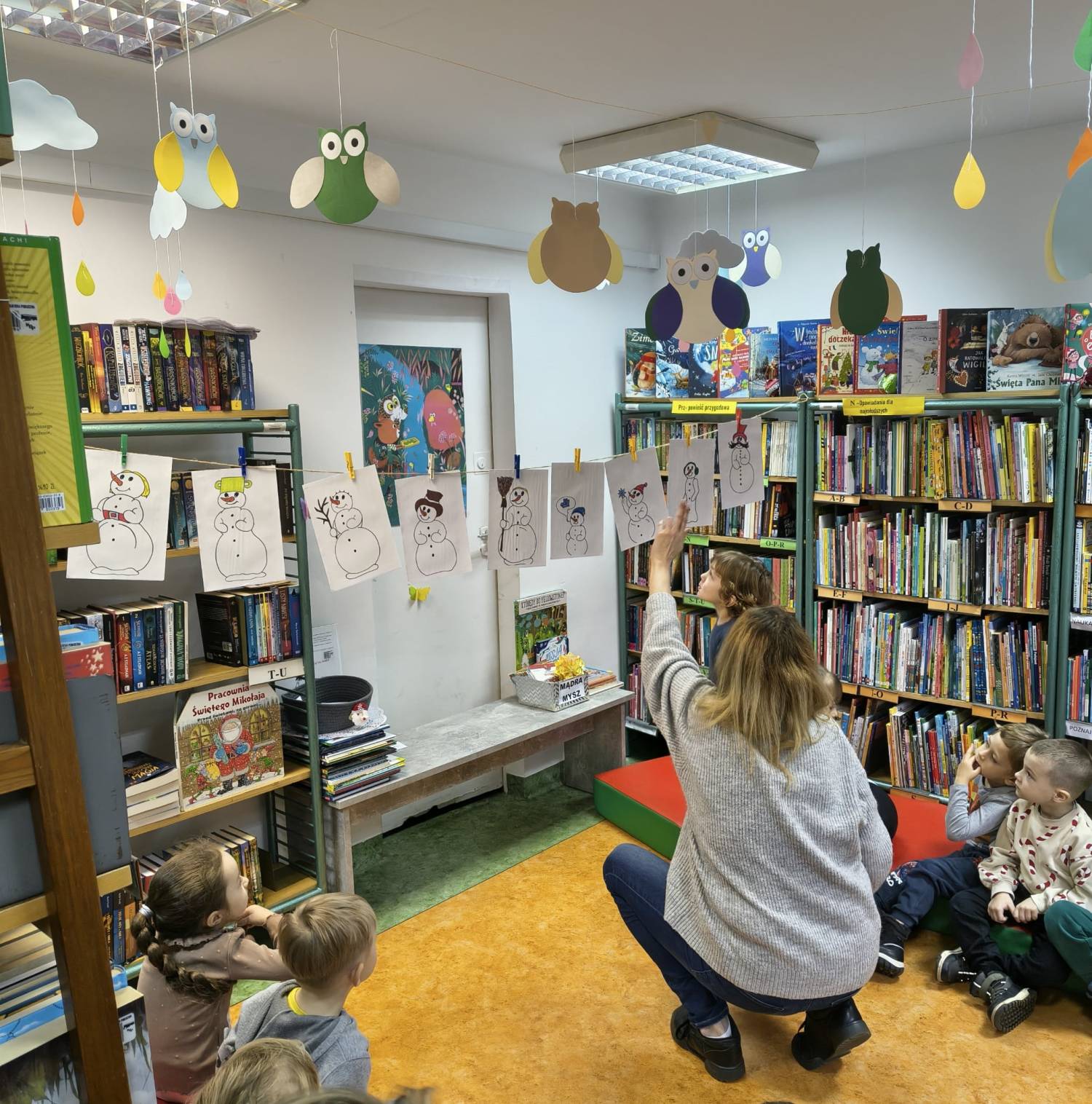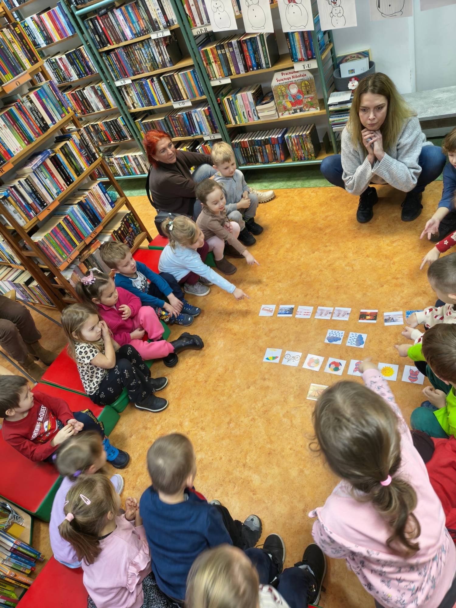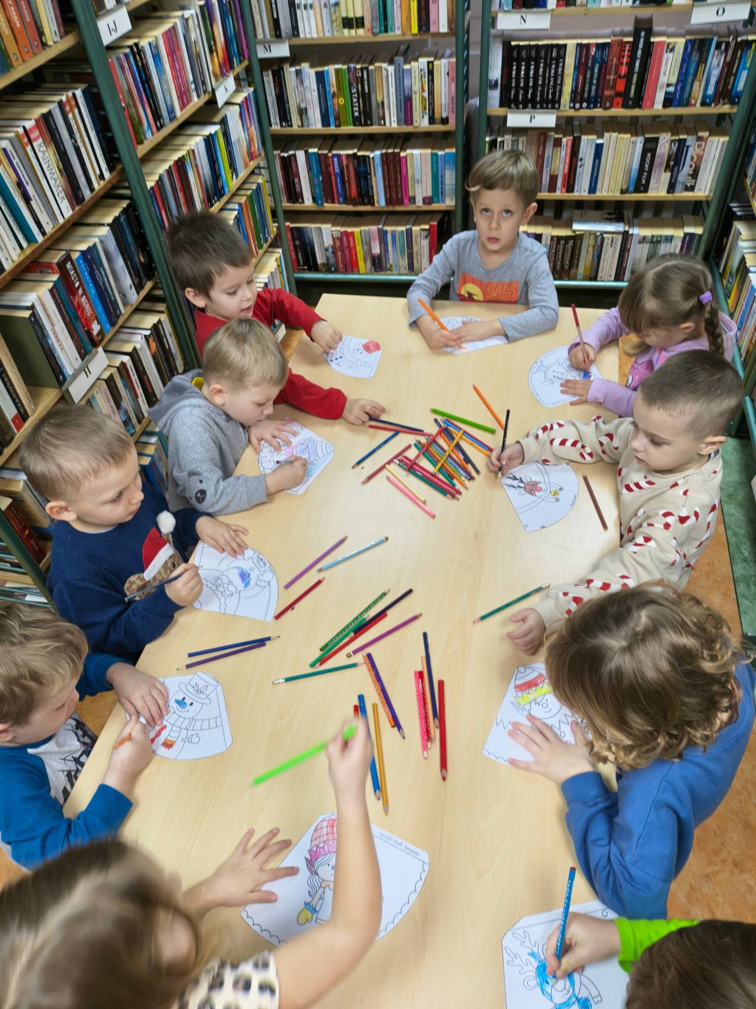 Kolejne poszukiwania zimy za nami. Tym razem wraz z Bystrzakami z Przedszkola nr 8 w Koszalinie przypomnieliśmy sobie czym charakteryzują się poszczególne pory roku. Na dzieci czekało wiele zimowych zadań i zagadek. Bibliotekarka zapoznała przedszkolaki z wierszem Wandy Chotomskiej pt. „Dziewięć bałwanków” a dzieci wyśmienicie poradziły sobie z ich opisem i ustawieniem. Bystrzaki wysłuchały również dwóch krótkich książek pt. „Szym Pansik. O, nie! Święta!” Suzanne Lang i „Wesołych Świąt, Gus” Chrisa Chattertona. Kolejnym zadaniem było pokolorowanie świątecznych figurek przedstawiających: Św. Mikołaja, bałwanka, renifera i Elfy. Na koniec spotkania czekało na nas to co lubimy najbardziej czyli książki które wspólnie mogliśmy pooglądać.