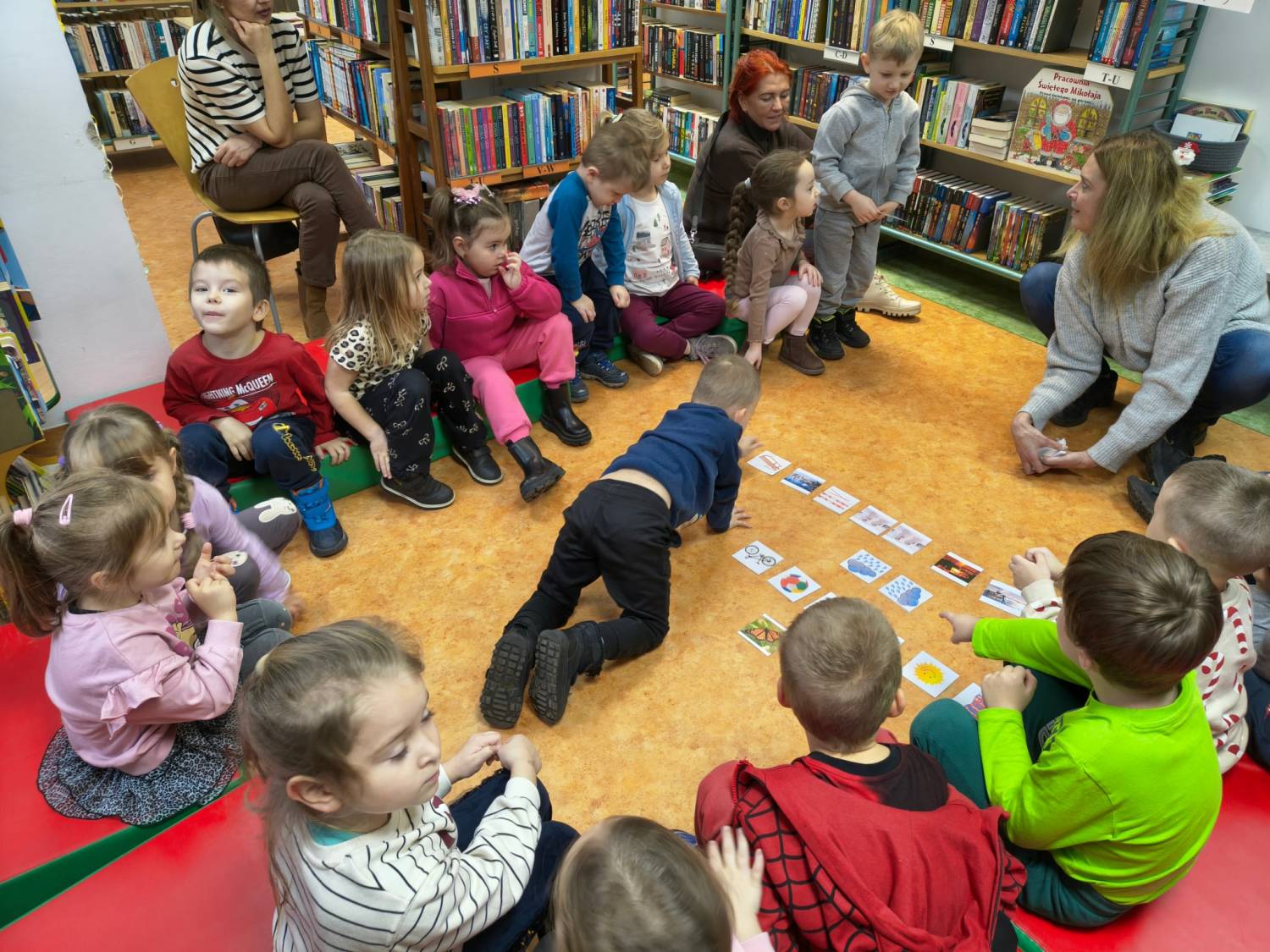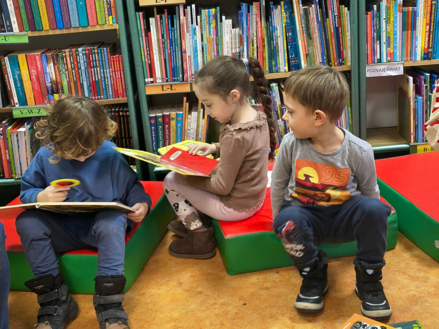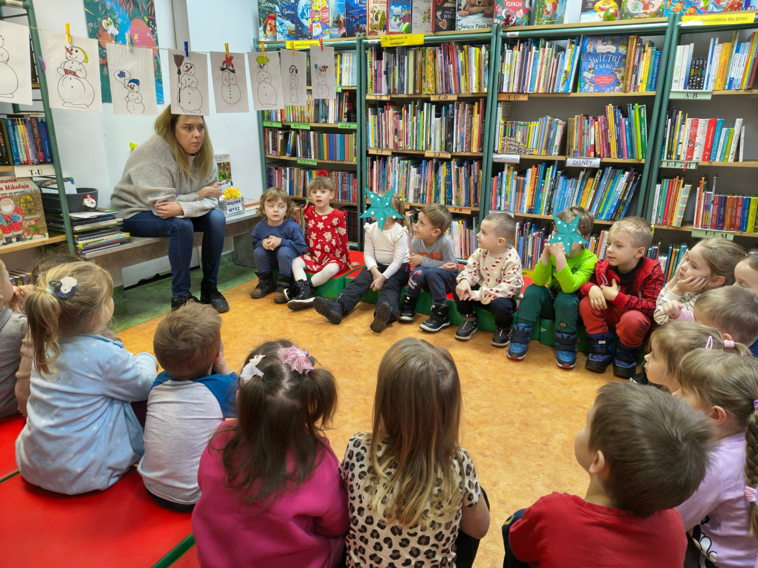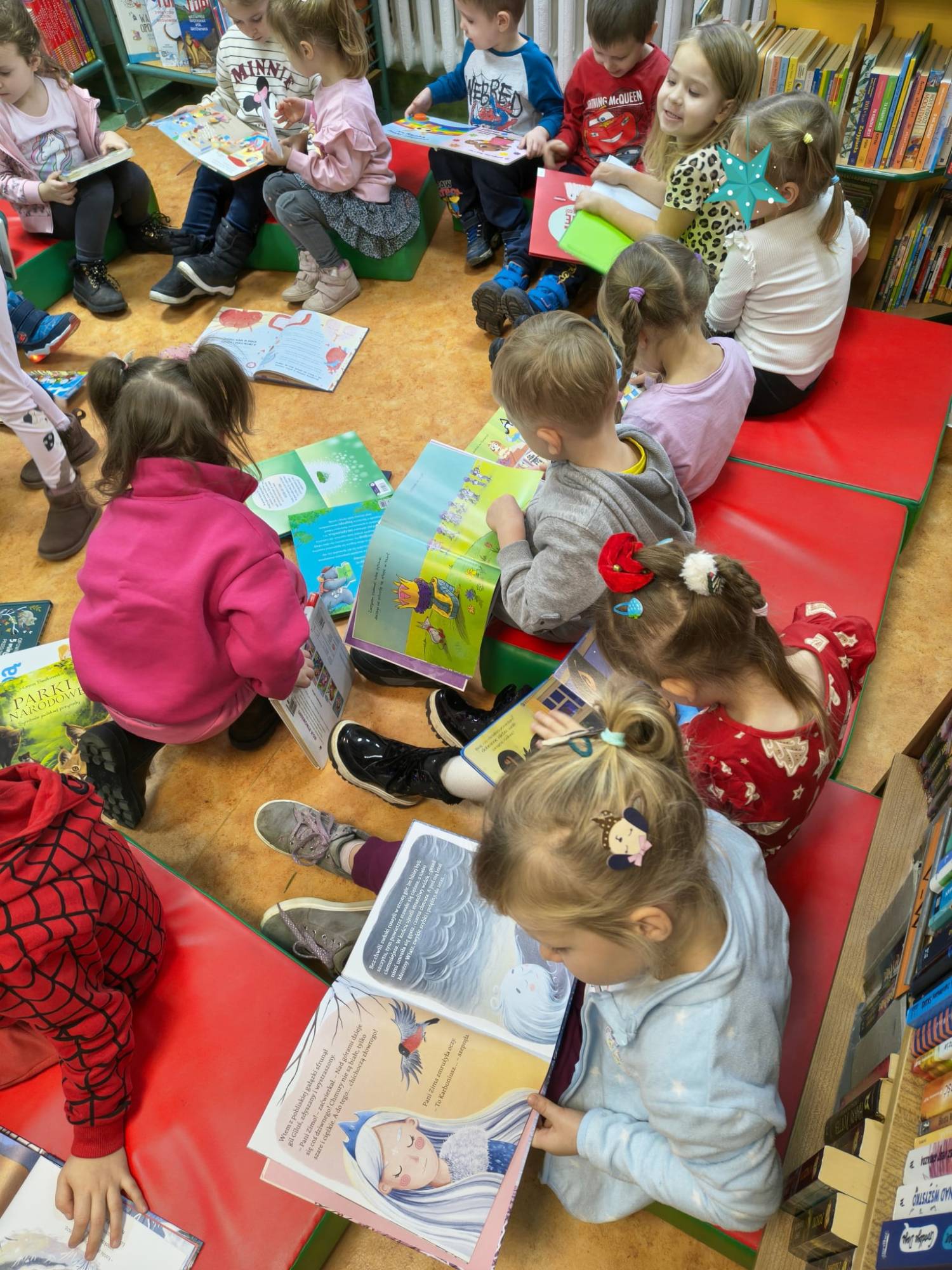 Kolejne poszukiwania zimy za nami. Tym razem wraz z Bystrzakami z Przedszkola nr 8 w Koszalinie przypomnieliśmy sobie czym charakteryzują się poszczególne pory roku. Na dzieci czekało wiele zimowych zadań i zagadek. Bibliotekarka zapoznała przedszkolaki z wierszem Wandy Chotomskiej pt. „Dziewięć bałwanków” a dzieci wyśmienicie poradziły sobie z ich opisem i ustawieniem. Bystrzaki wysłuchały również dwóch krótkich książek pt. „Szym Pansik. O, nie! Święta!” Suzanne Lang i „Wesołych Świąt, Gus” Chrisa Chattertona. Kolejnym zadaniem było pokolorowanie świątecznych figurek przedstawiających: Św. Mikołaja, bałwanka, renifera i Elfy. Na koniec spotkania czekało na nas to co lubimy najbardziej czyli książki które wspólnie mogliśmy pooglądać.