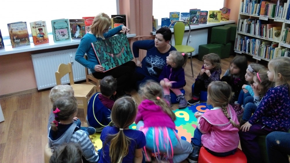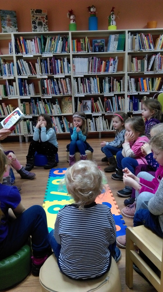 Dzisiaj dzieci, z przedszkola „Zaczarowany Domek”, przyszły do nas na spotkanie z książeczkami. Przedszkolaki pilnie wysłuchały: bajki „Czajniczek”, baśni „Zielony Kapturek”, oraz legendy „Lech, Czech i Rus”. Aktywnie rozwiązywały bajkowe zagadki, bezbłędnie ułożyły puzzle, a na koniec kolorowały czajniczki.