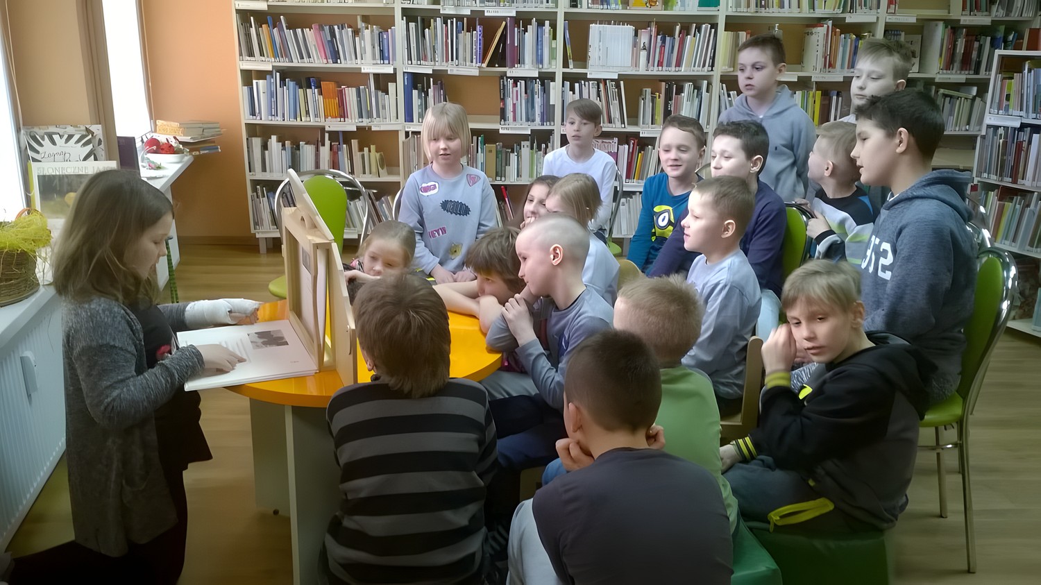 W piękny, słoneczny poranek przybyły do nas dzieci z klasy II C Szkoły podstawowej nr 1 w Koszalinie. Uczniowie zapoznali się z zasadami korzystania z biblioteki, a także z pojęciami bajek, baśni i legend, duża część z nich prawidłowo definiowała pojęcia. Dzieci wysłuchały jedną legendę ze zbioru Wandy Chotomskiej - ”Legenda o Sielawowym Królu”, a wiosenna bajkę „Mój przyjaciel Kemushi” przeczytała jedna z uczennic. Dzieciom bardzo podobał się nasz księgozbiór, do zobaczenia zatem już jako czytelnicy naszej biblioteki!