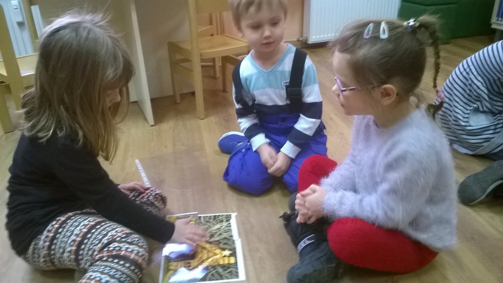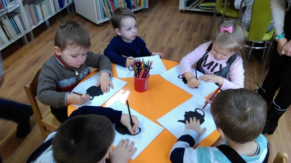 W nowym roku 2017 przybyła do nas grupa przedszkolaków z przedszkola „Bambino”. Tym razem spotkaliśmy się, by zapoznać się z nowymi bajkami, zapomnianymi baśniami i ciekawymi legendami. Dzieci wysłuchały zmienionej wersji „Czerwonego kapturka” i miały zadanie, by wychwycić zmienione słowa w tekście. Dzieci doskonale znały tę baśń i bezbłędnie poprawiały czytającą bibliotekarkę. Potem układały puzzle z ilustracjami do różnych bajek i baśni oraz odgadywały ich tytuły. Przedszkolaki wysłuchały również współczesnej bajki o „Czajniczku” Watanabe Etsuko i rysowały ilustrację do tej bajki. Spotkanie zakończyliśmy legendą koszalińską „O dobrych karzełkach z nad brzegów Jamna”.