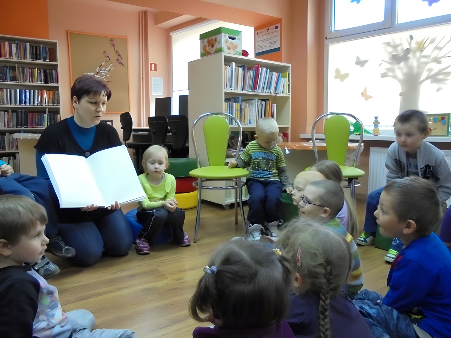 25 kwietnia na pogadankę o tolerancji przybyła grupa Biedronek z Przedszkola "Happy Days". 5 -latki wysłuchały uważnie opowieści Tomka, który był chłopcem niewidomym. Dzieci bardzo zainteresowały się książką, ponieważ były zdziwione, że nie jest tak kolorowa jak inne książeczki dla maluchów. Po zabawach na orientację dzieci wykonały własną Czarną książkę kolorów.