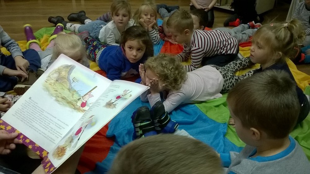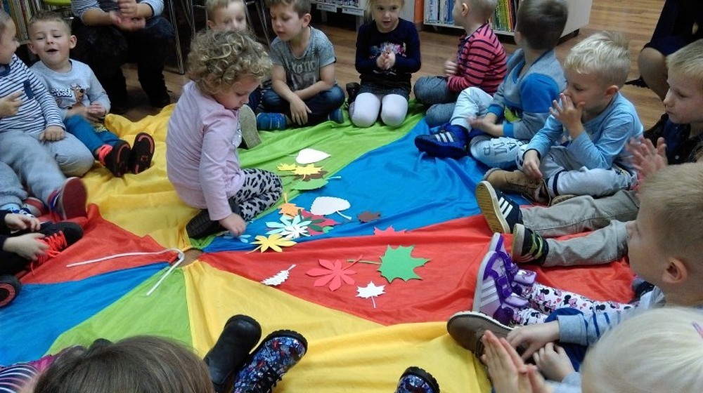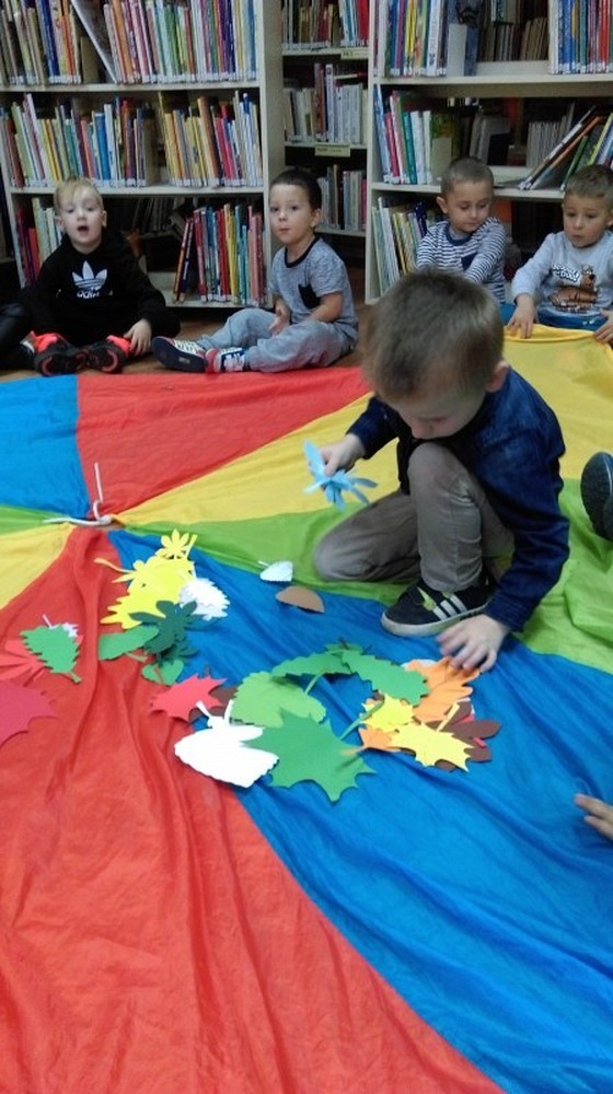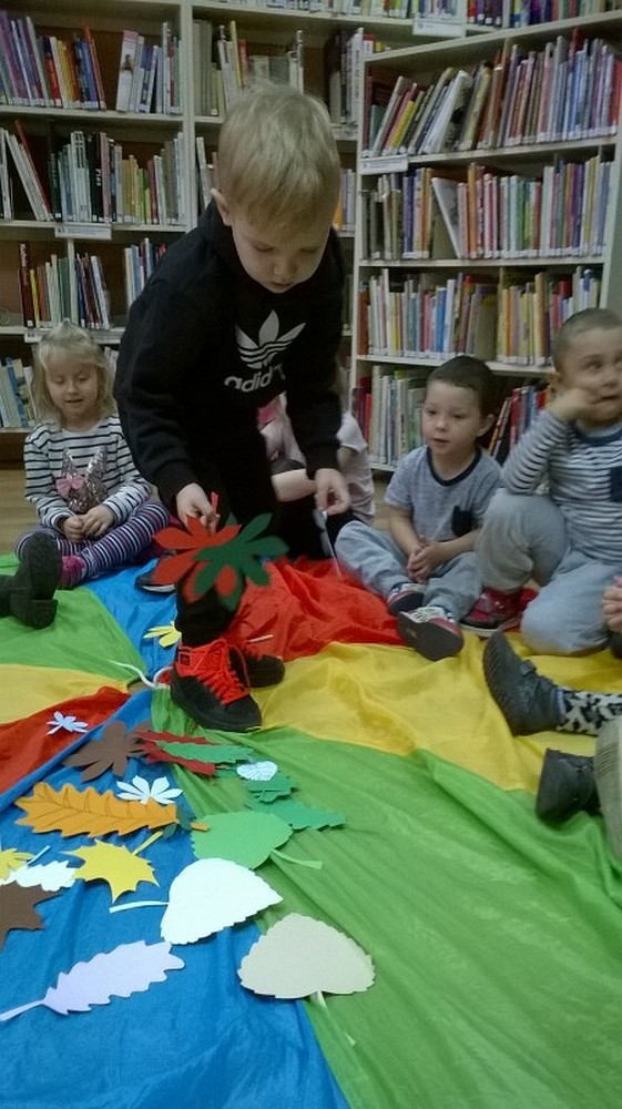 Na kolejne spotkanie o jesieni przyszły do nas „Biedronki" z Przedszkola Happy-Days. W jesiennej atmosferze, pośród kolorowych liści dzieci poznały gatunki drzew, ich liście i owoce. Było i czytanie jesiennej opowieści, przeglądanie książek no i oczywiście wesołe zabawy. Wizyta była bardzo udana, do następnego spotkania.